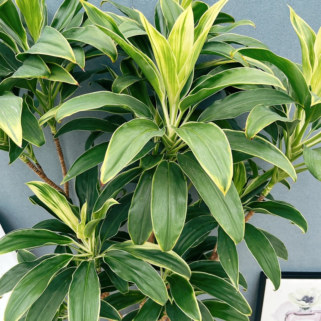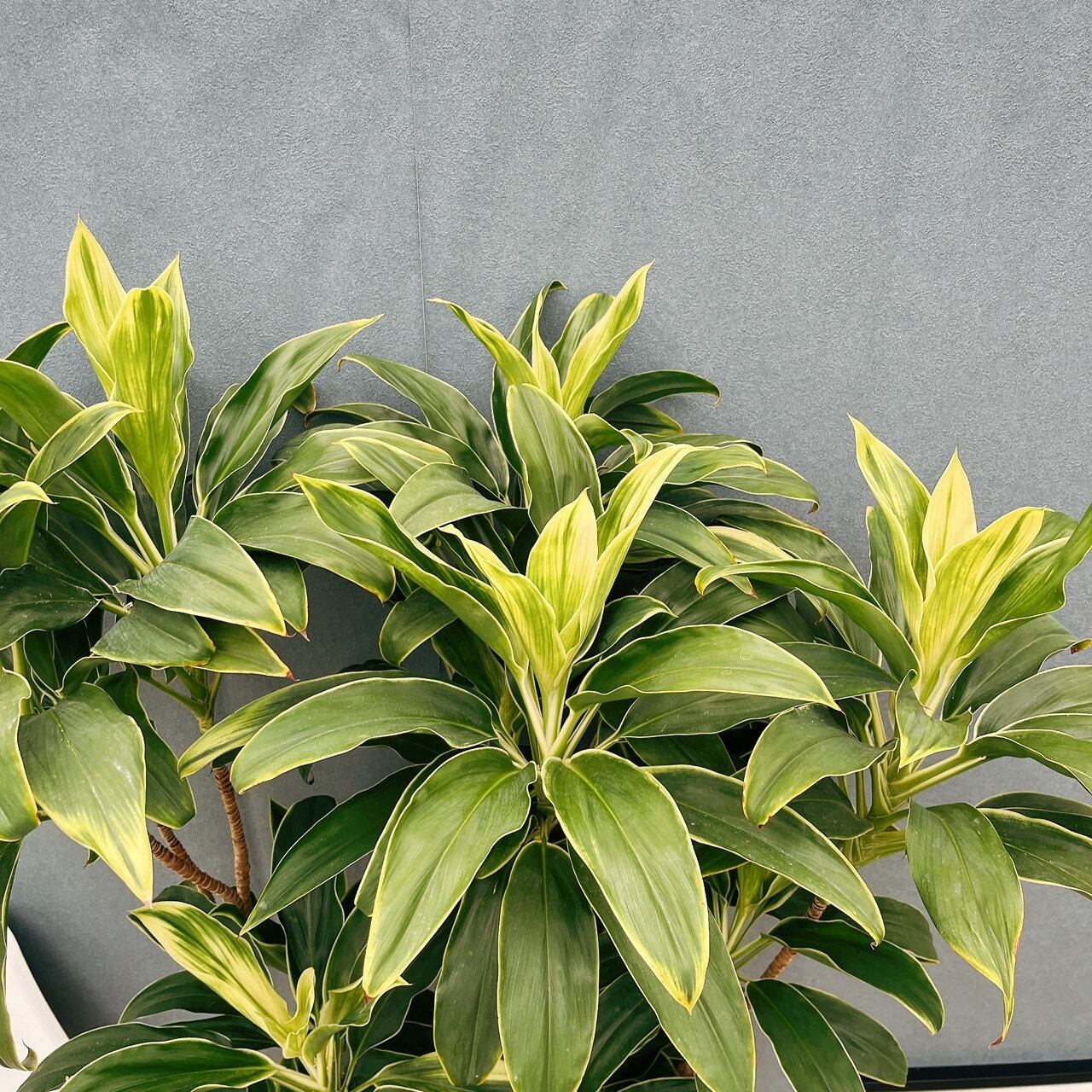 幅広い葉がお花が咲くように展開していく姿が魅力的な品種、ドラセナコルジリネの白雲です☆