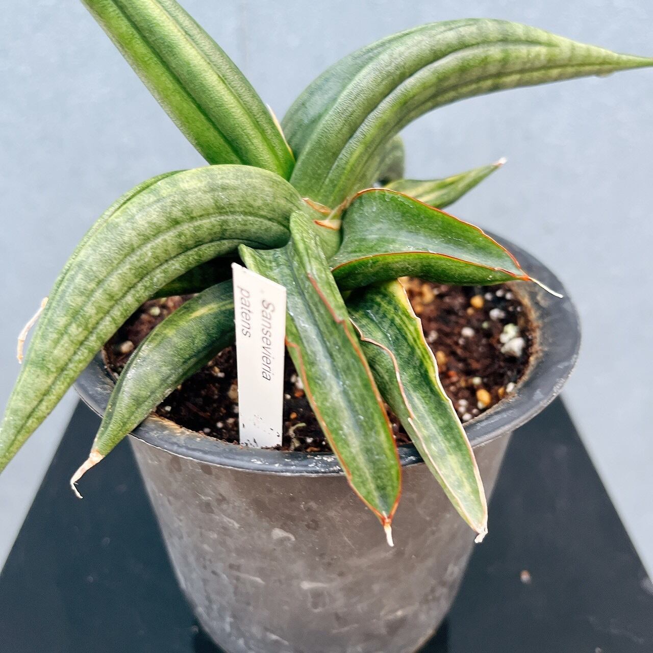 サンスベリアは比較的育てやすく、初心者の方にもおすすめの品種で、その中でもパテンスは個体差はありますが、大きくなるとうねるように展開する葉が特徴的な品種です。