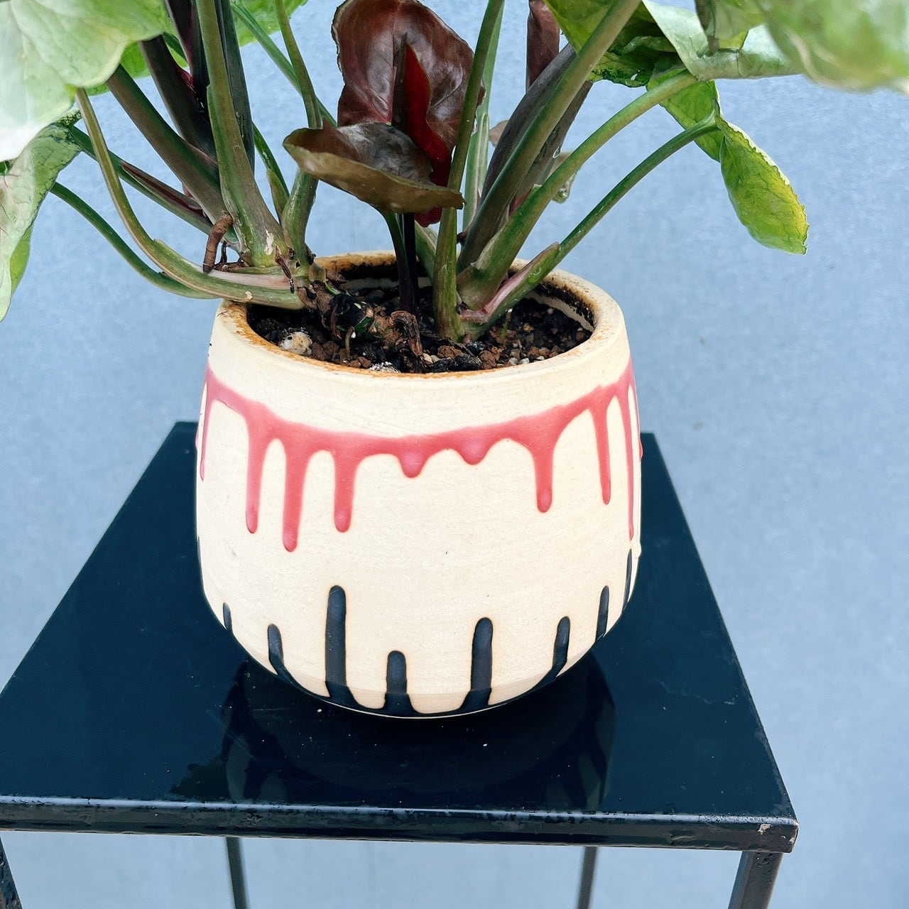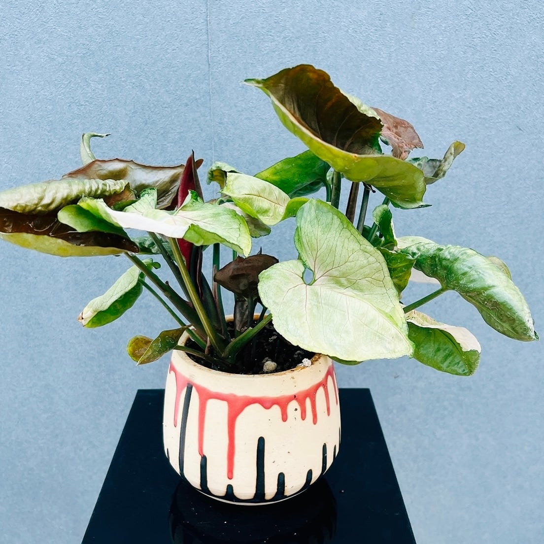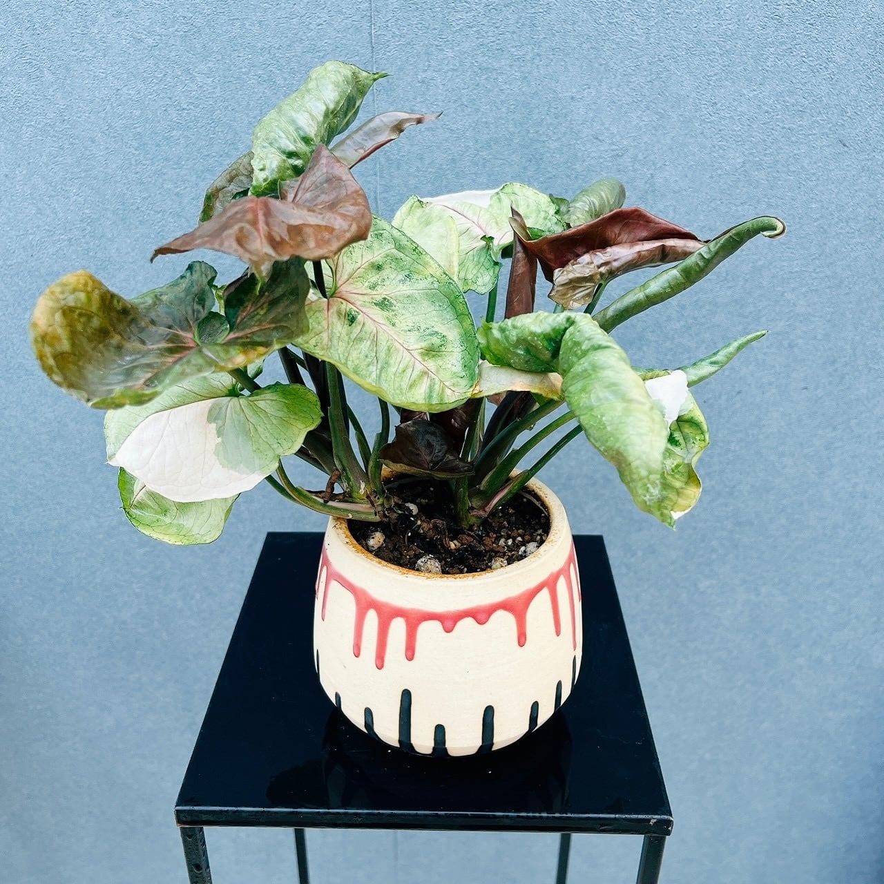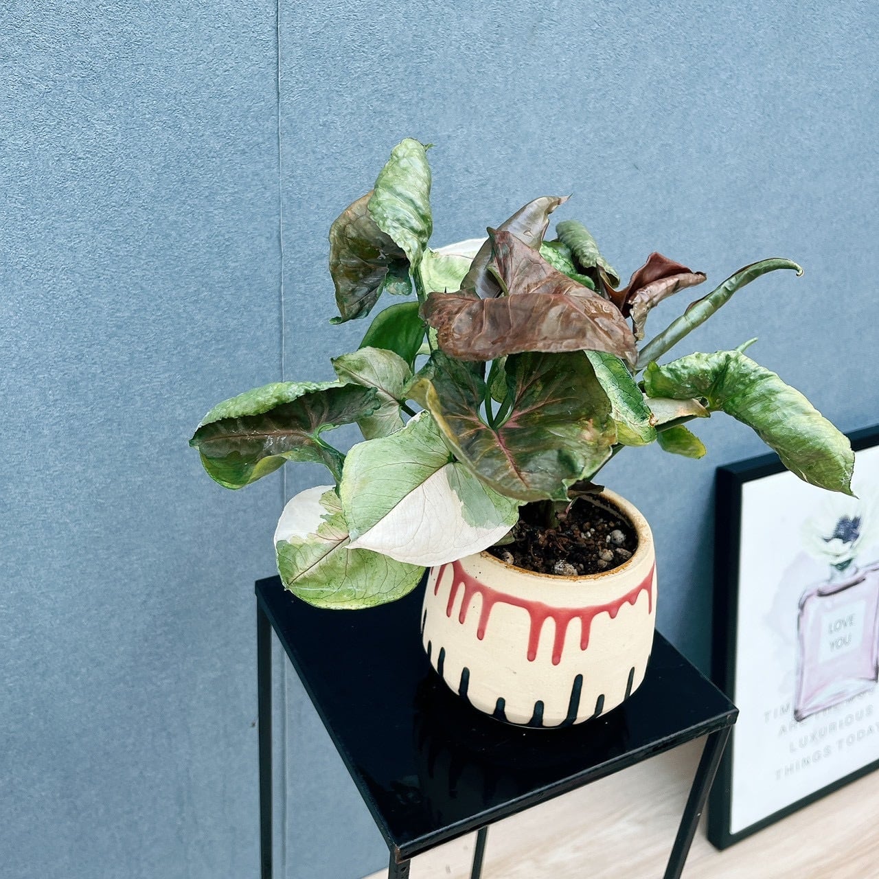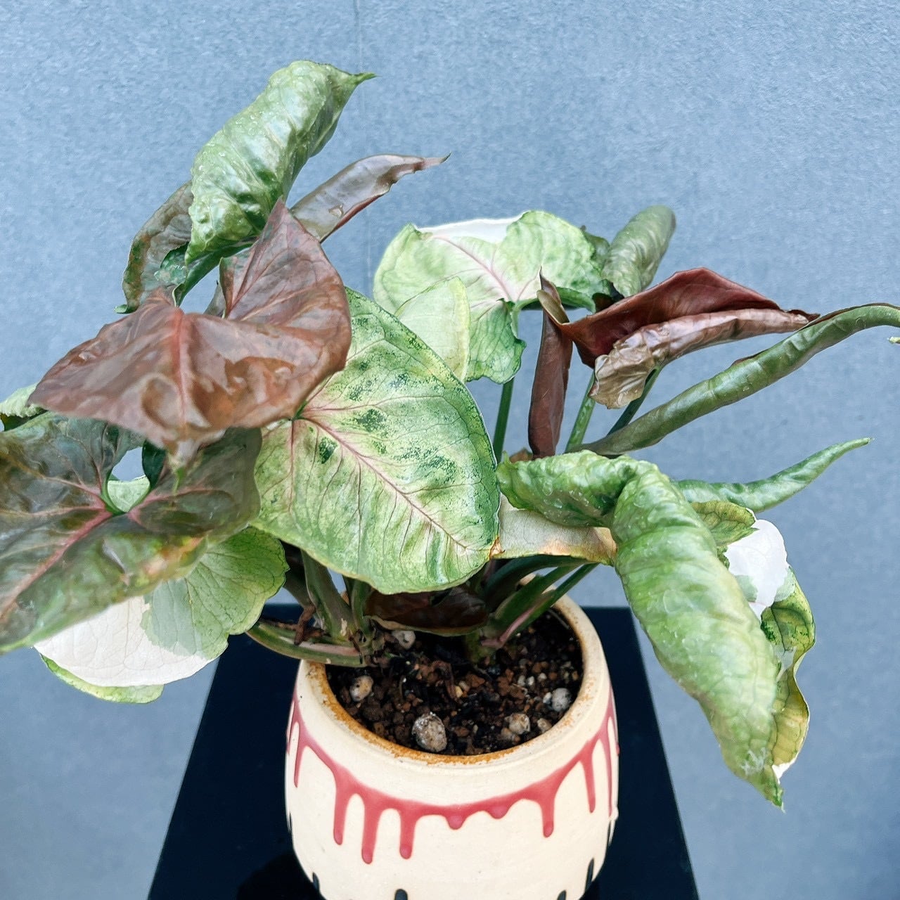 [現品]【希少】シンゴニウム ピンクジュエル 斑入り 観葉植物 レア 室内 小さめ 可愛い 陶器鉢受け皿付き
