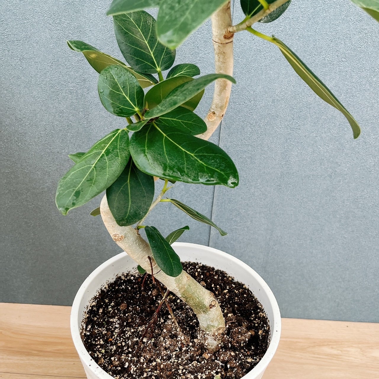 グリーンの卵型の葉がおしゃれな、フィカスベンガレンシスの曲がりです!☆
