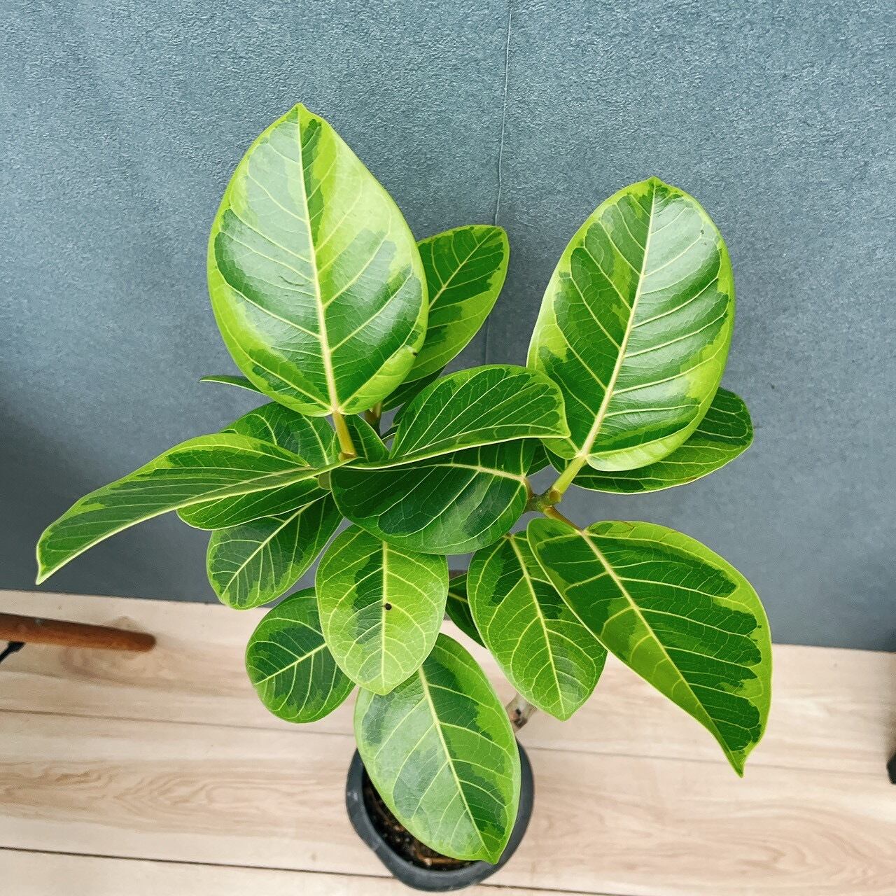 明るい斑入りのおしゃれな葉で人気の、フィカスアルテシマ、6号サイズです☆