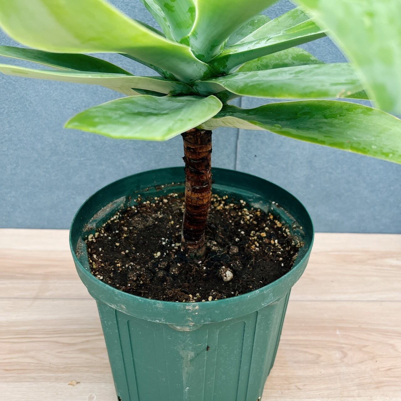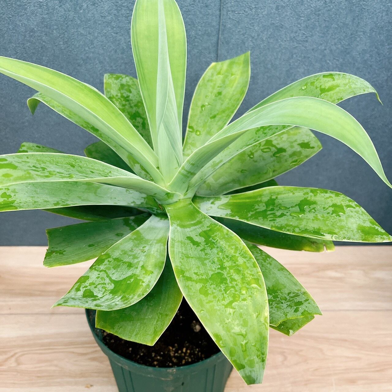アテナータは、鋭い棘のない放射線状に広がる葉を持つアガベで、穏やかで優しい印象があります。