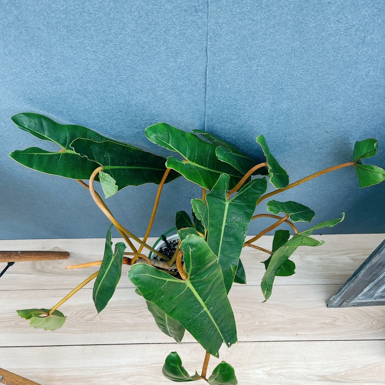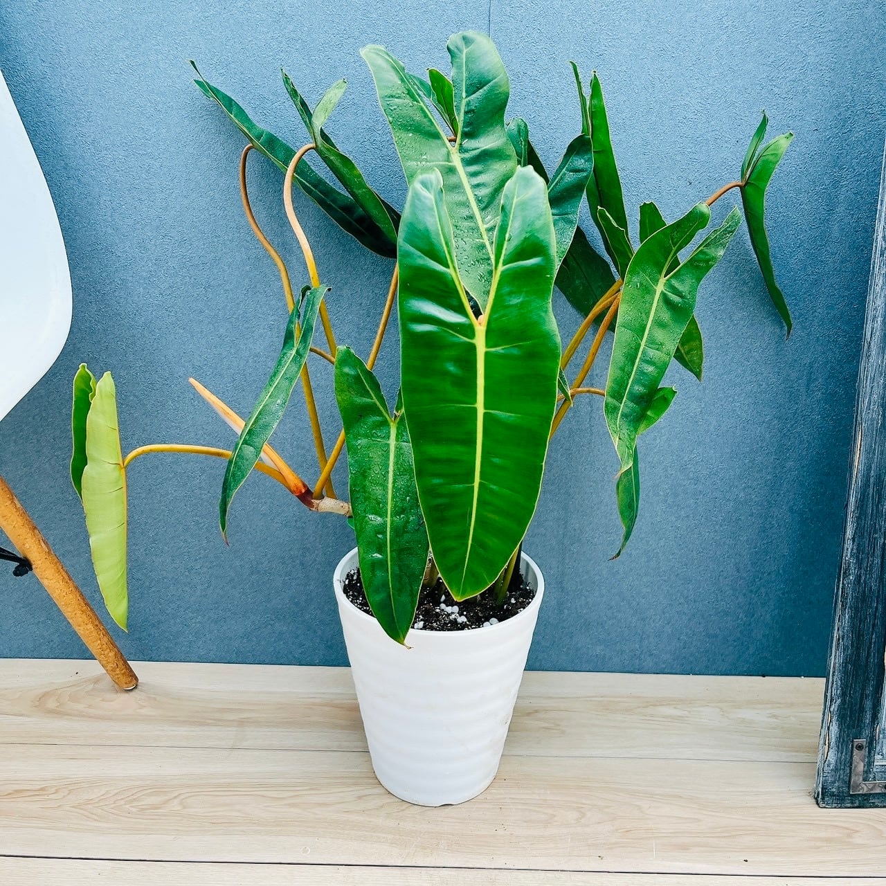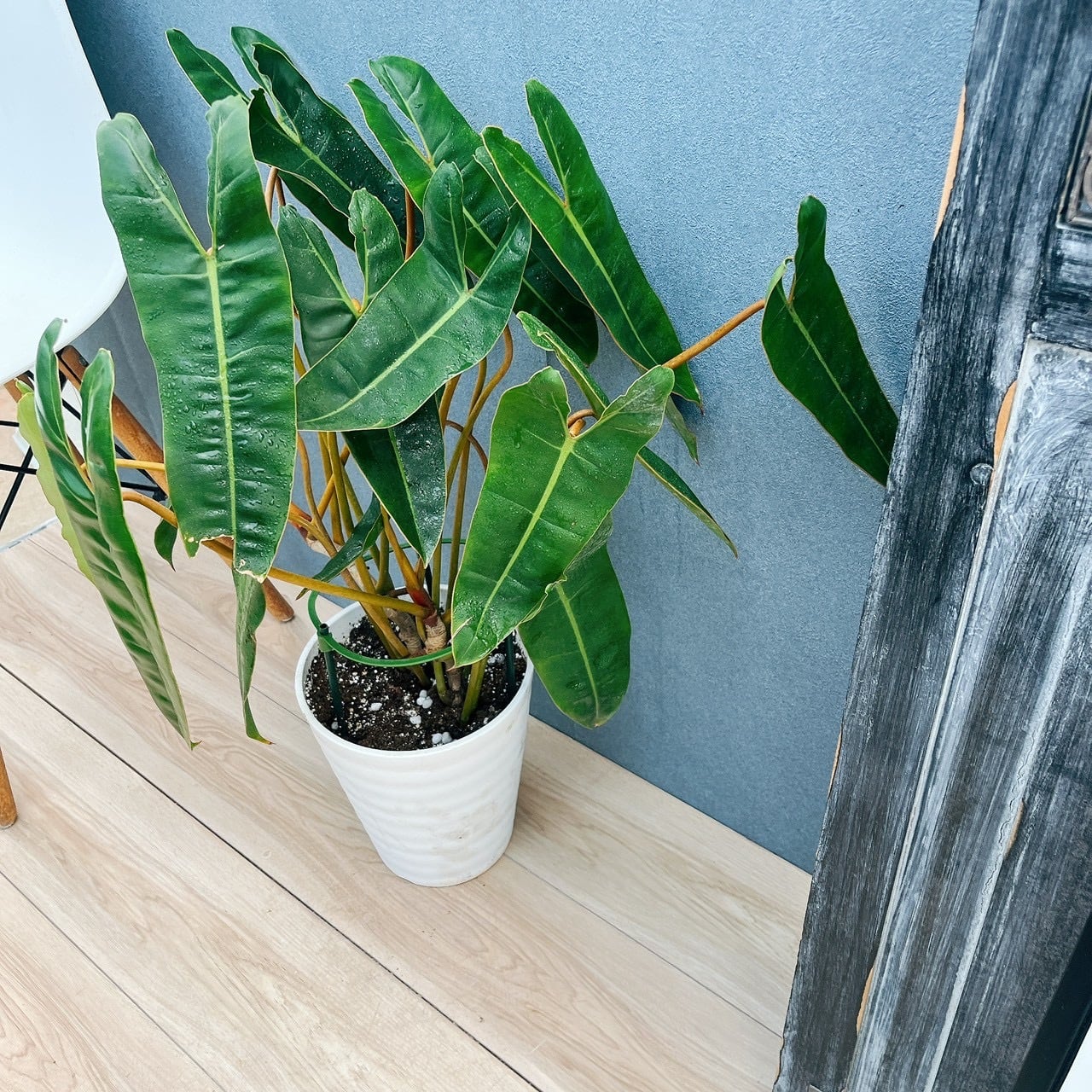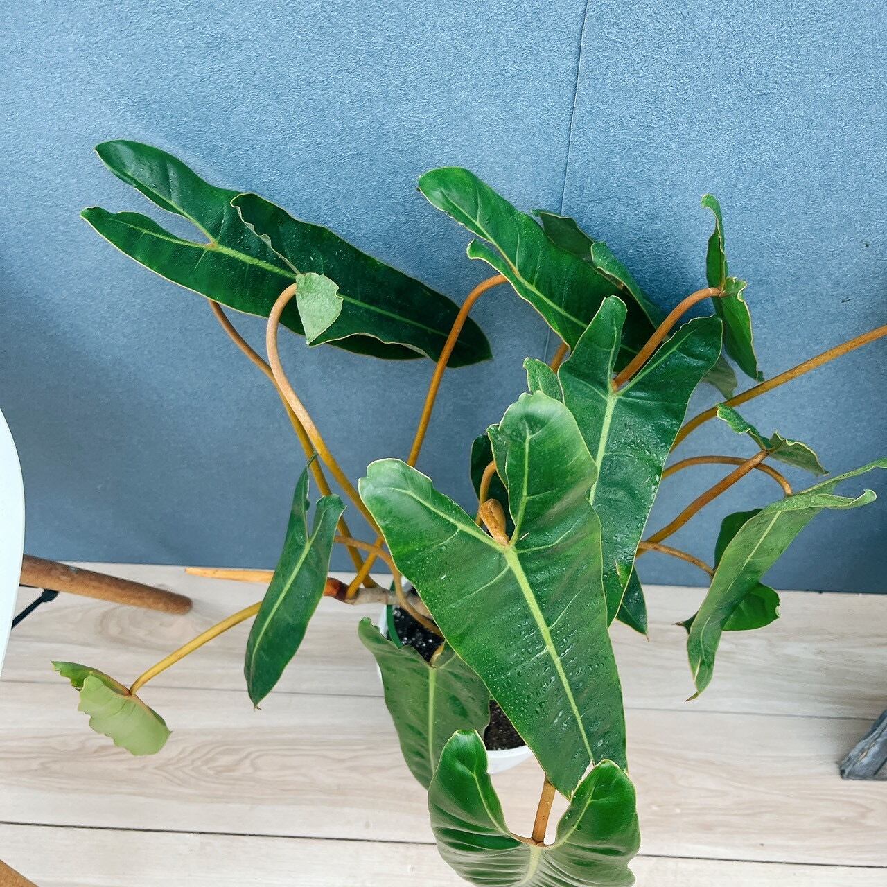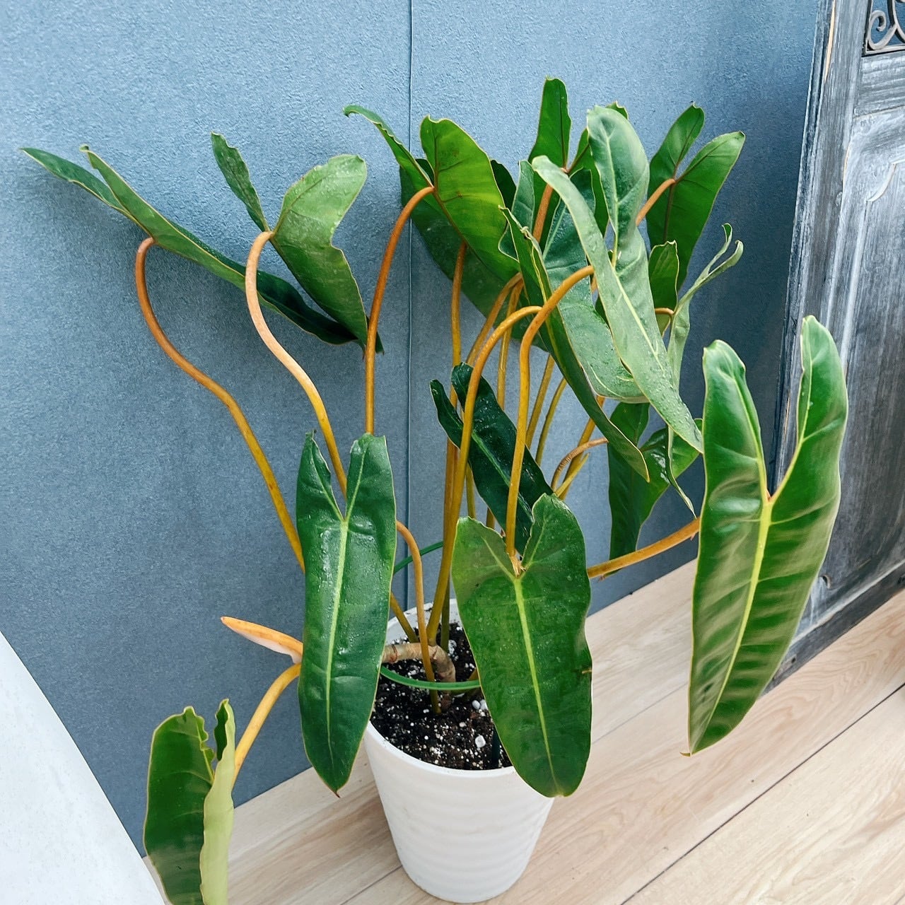 オレンジ色の茎に、細長い個性的なおしゃれな葉を持つ、フィロデンドロンビレッタエ(ビレッティア)です☆