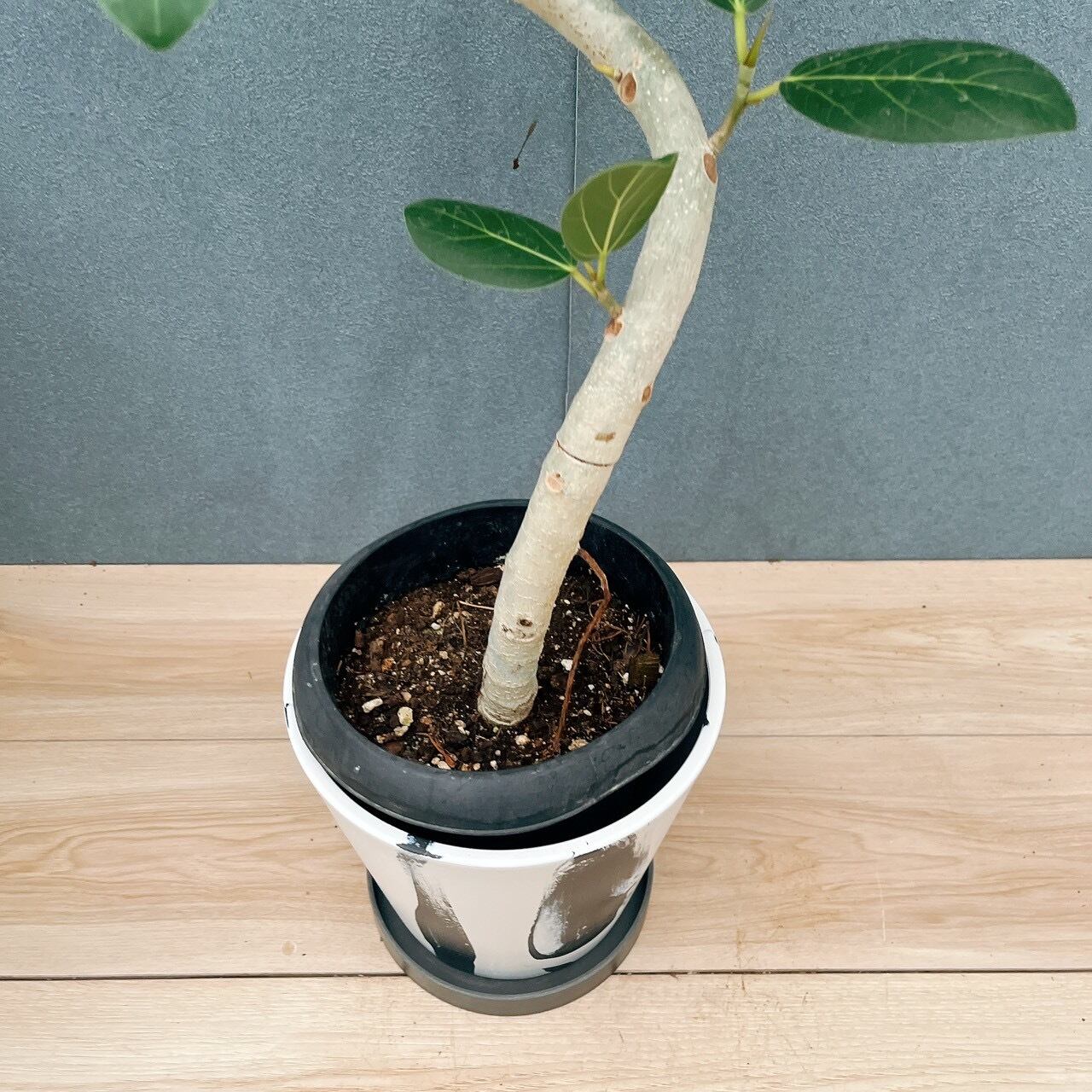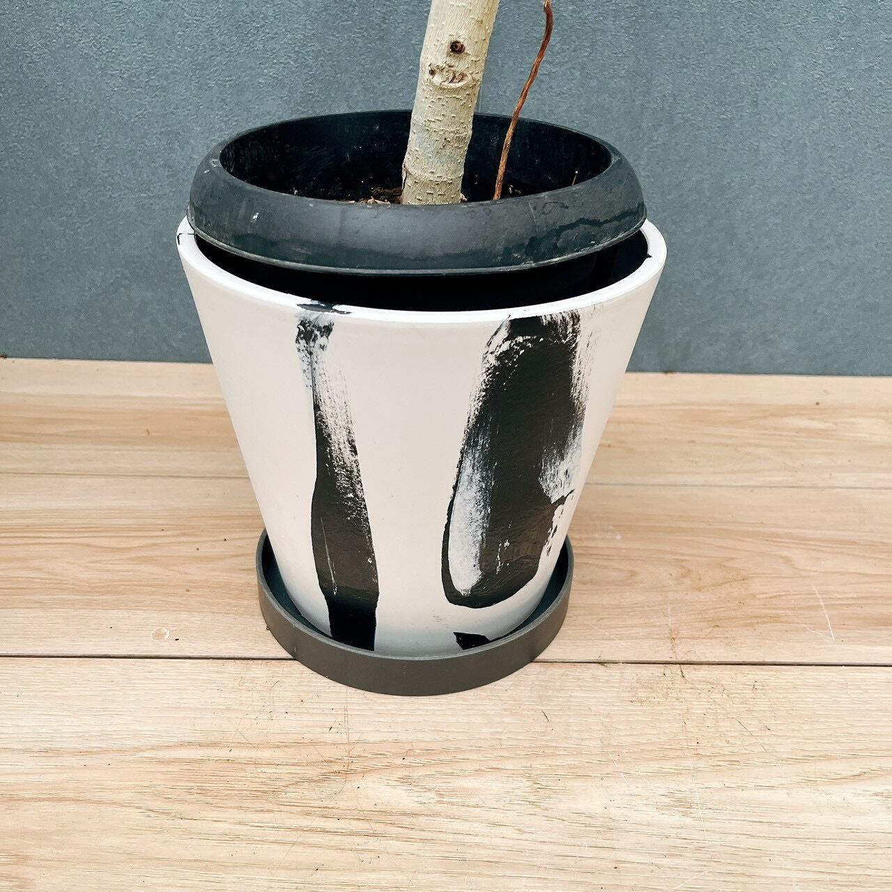 今回は、ホワイト×ブラックのマーブル鉢と合わせてみました!