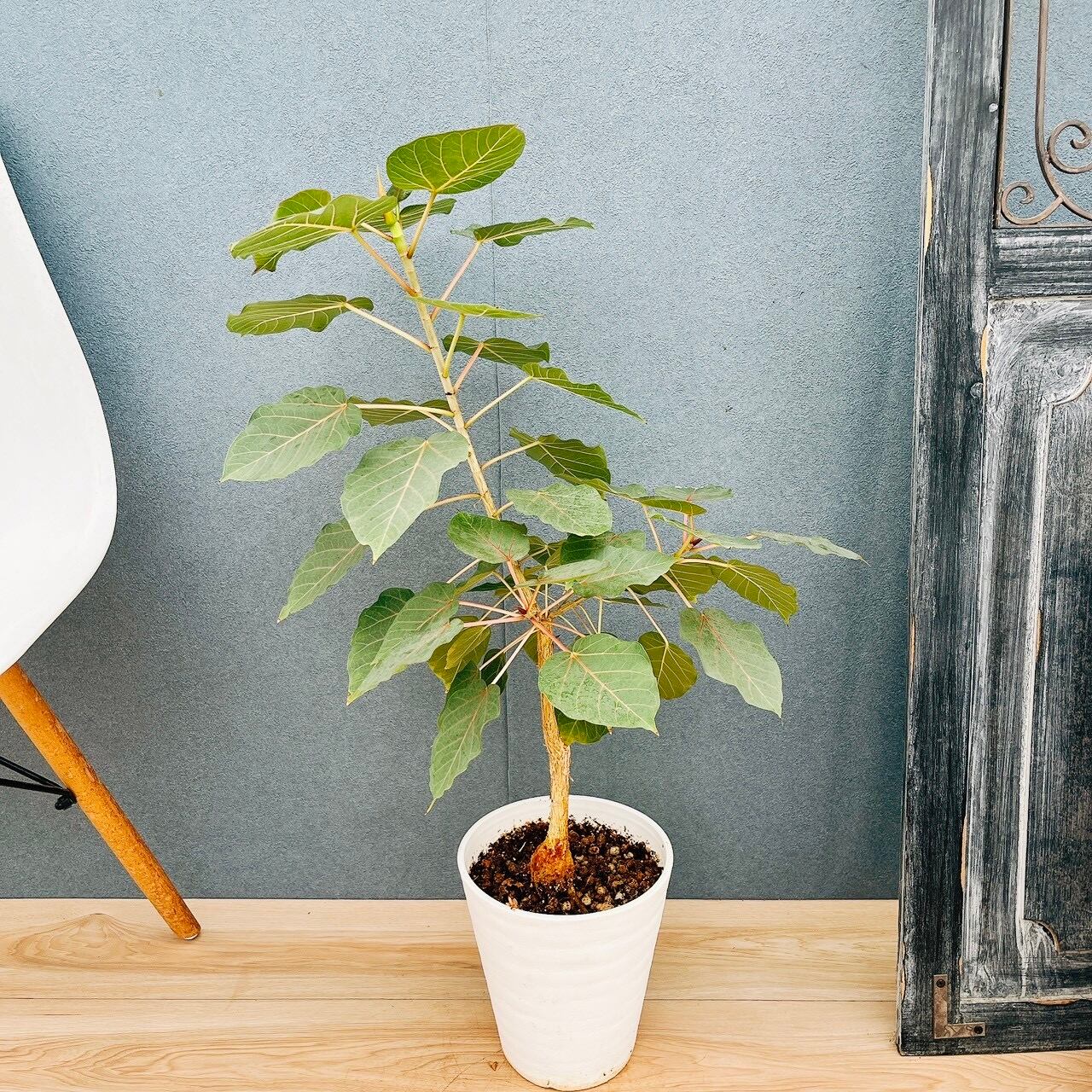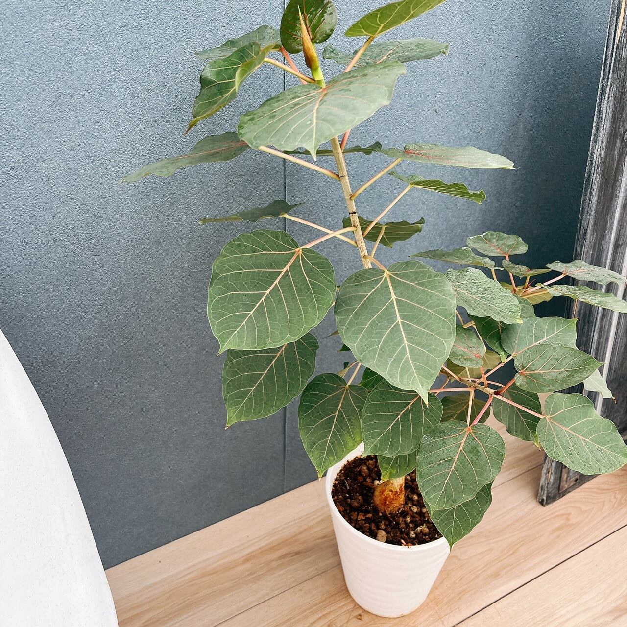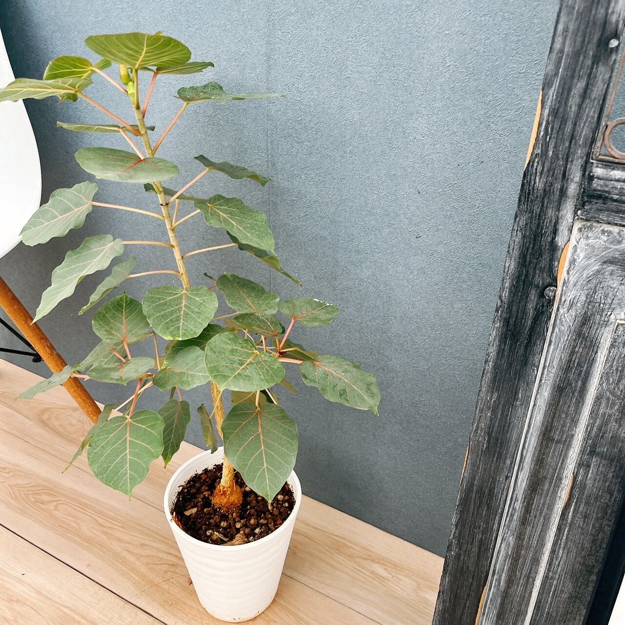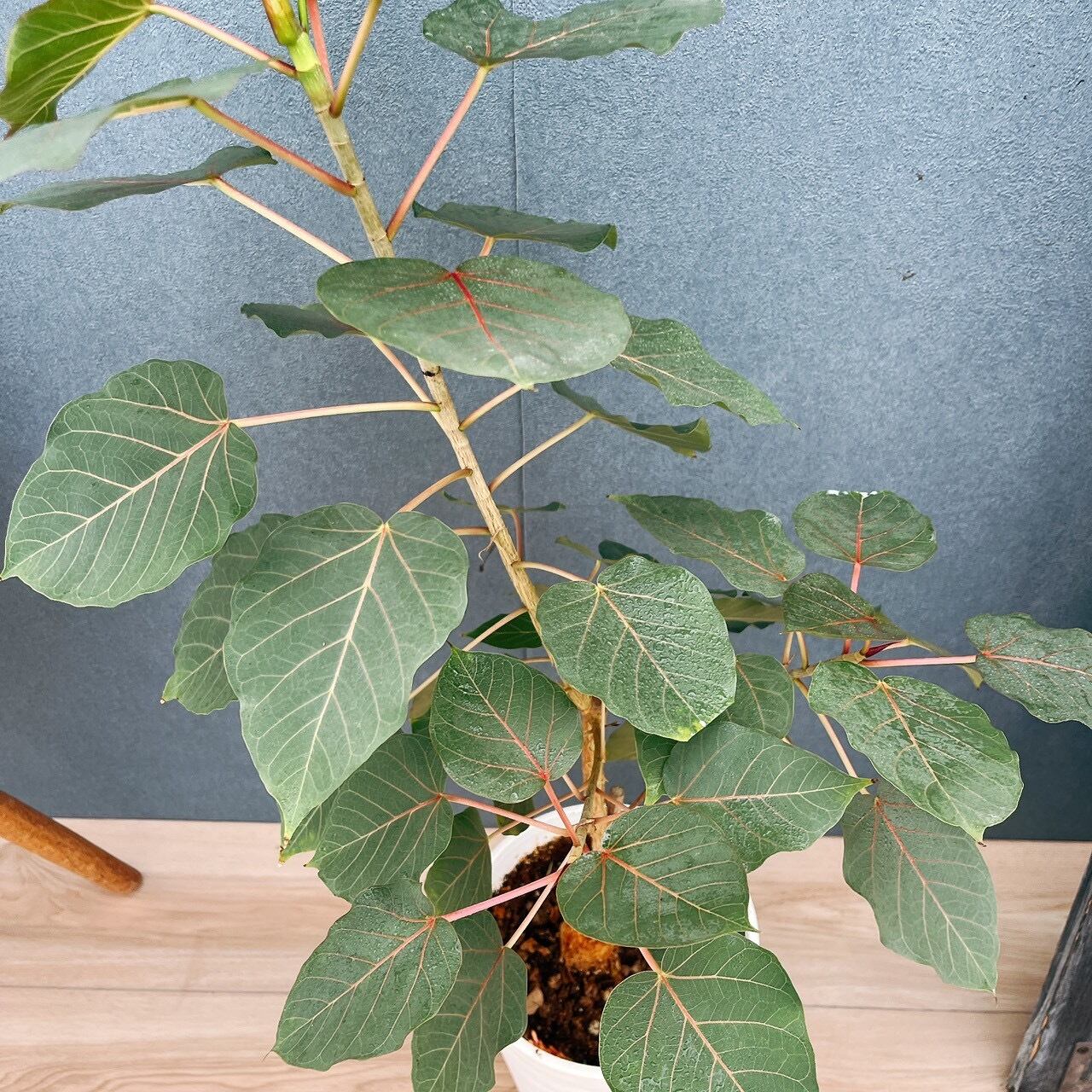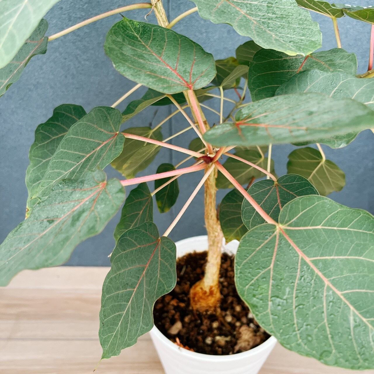 ハート型の葉に、赤色の葉脈が個性的で可愛いゴムの木、フィカスペティオラリスです☆