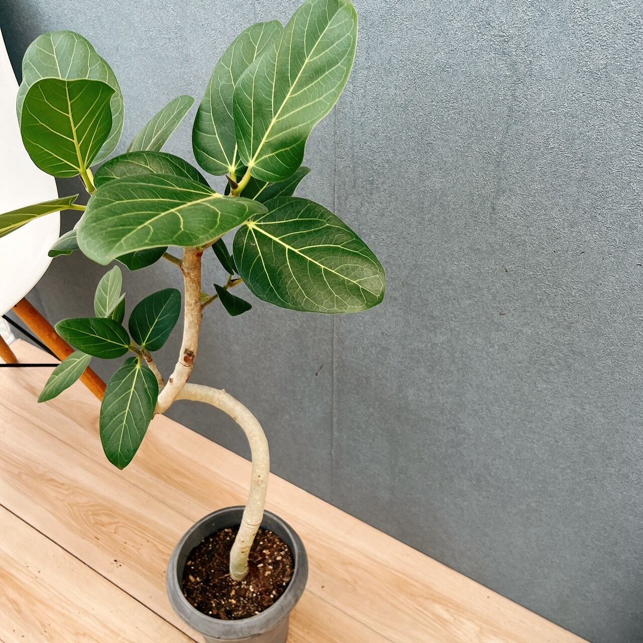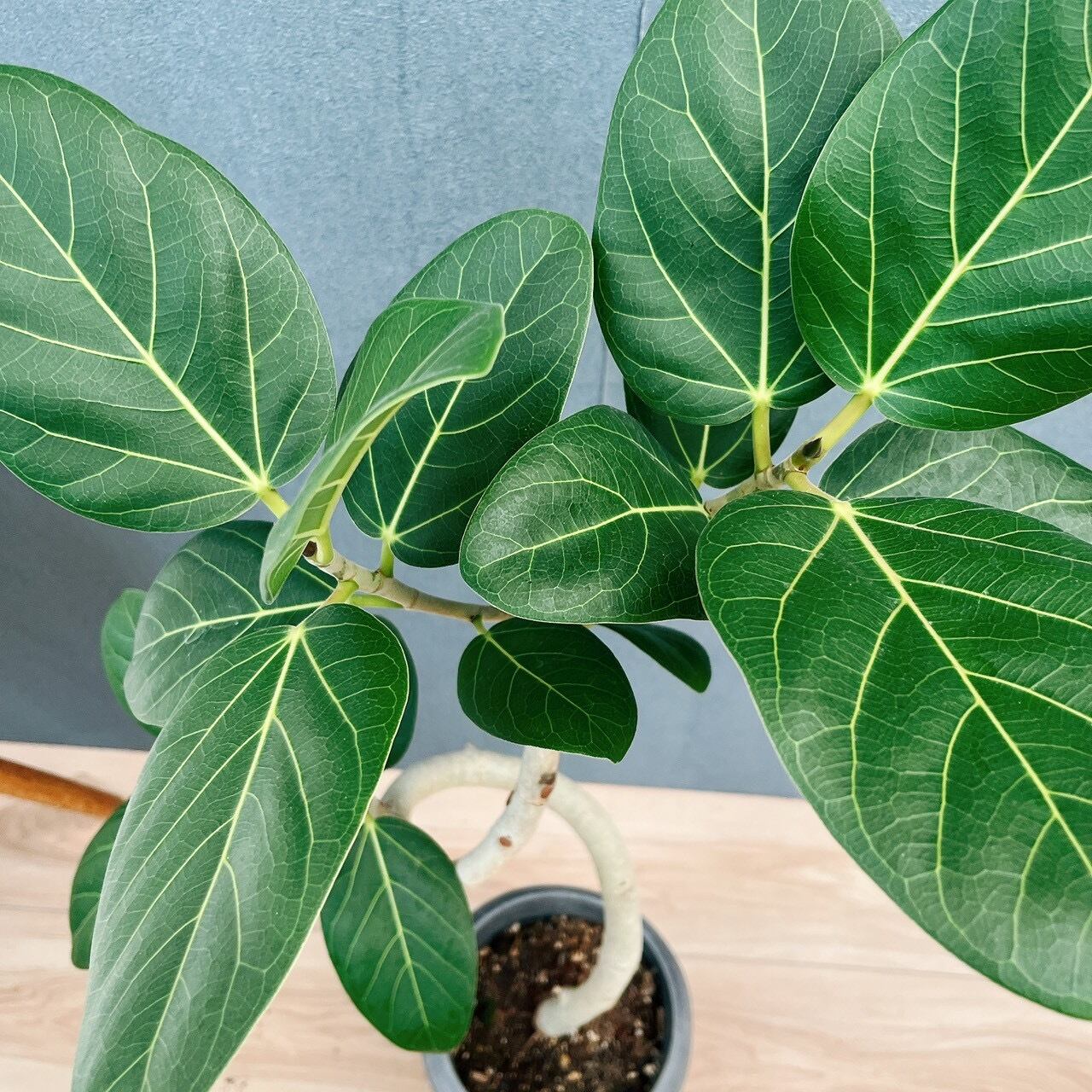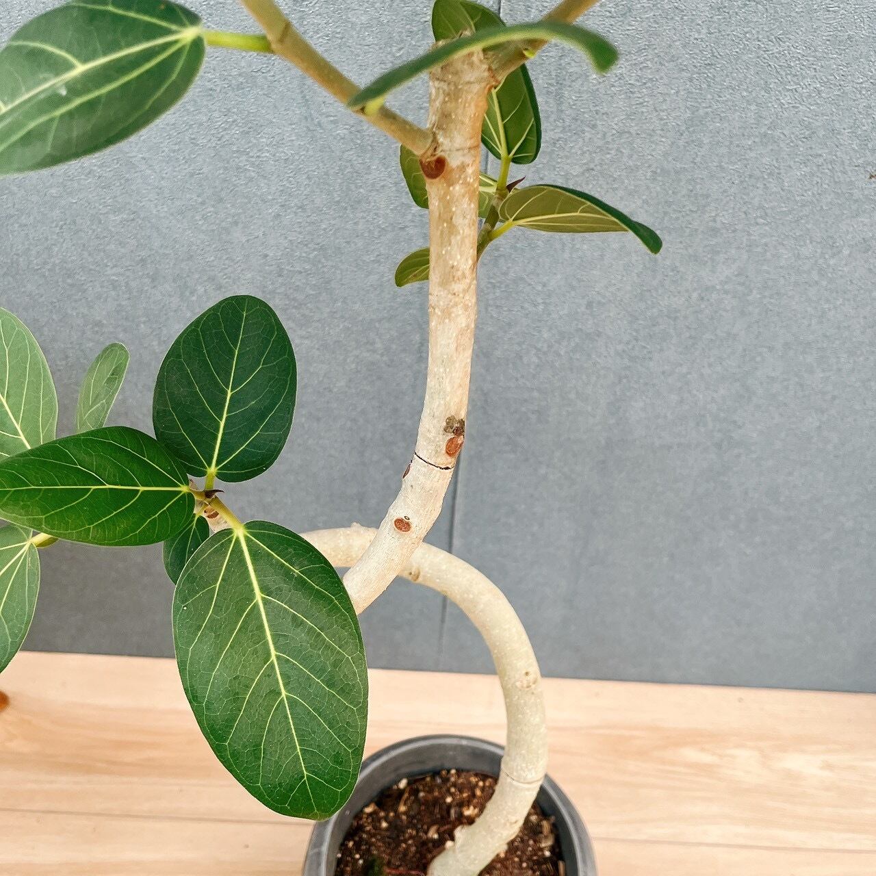 当店人気商品、グリーンの卵型の葉がおしゃれな、フィカスベンガレンシスの曲がりです!☆