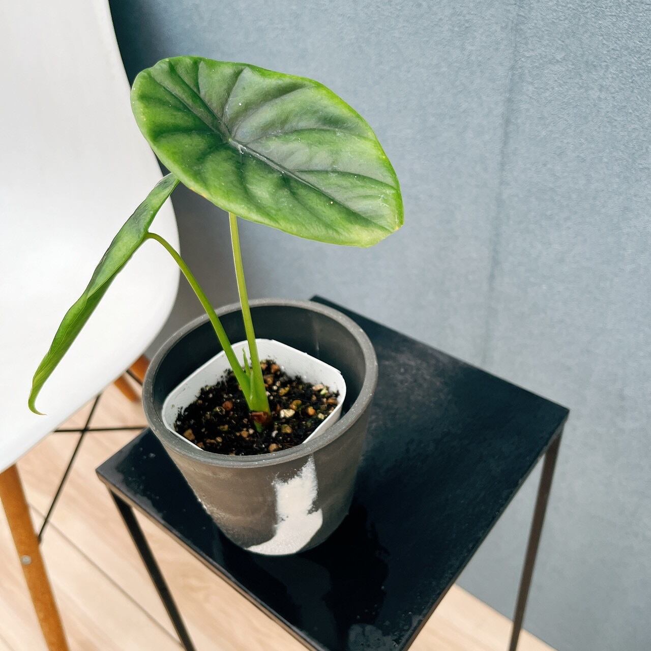 濃い深緑色の葉脈がとてもおしゃれな、アロカシアクリペオラタです☆