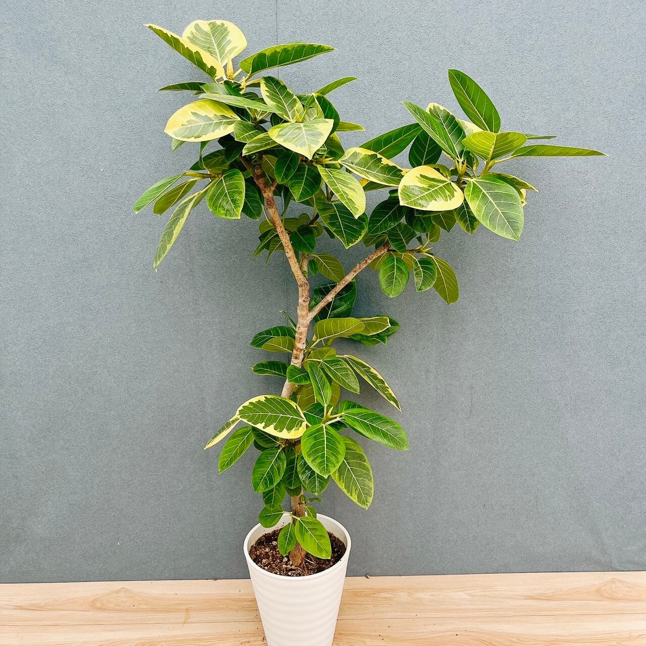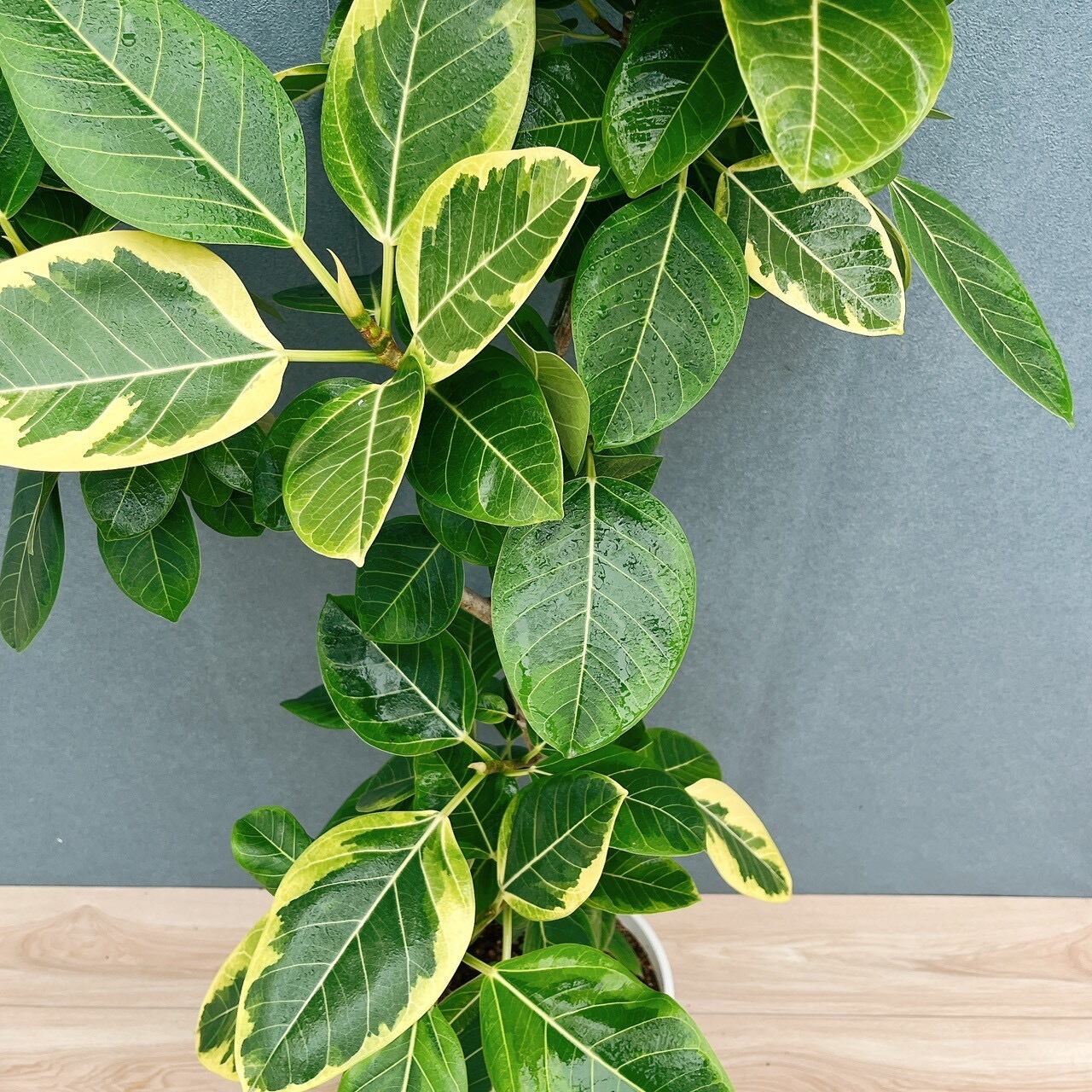 フィカスアルテシマは、ゴムの木の仲間で育てやすく、初めて植物を育てられる方にもおすすめの品種で、『永遠の幸せ』という花言葉を持つことから新築祝いや開店祝い等にもおすすめの植物です。