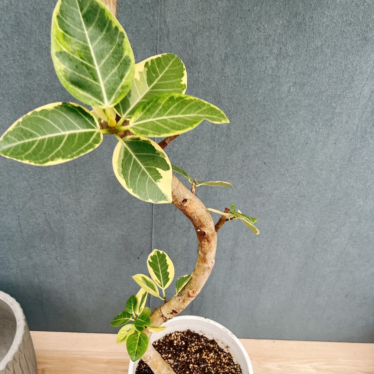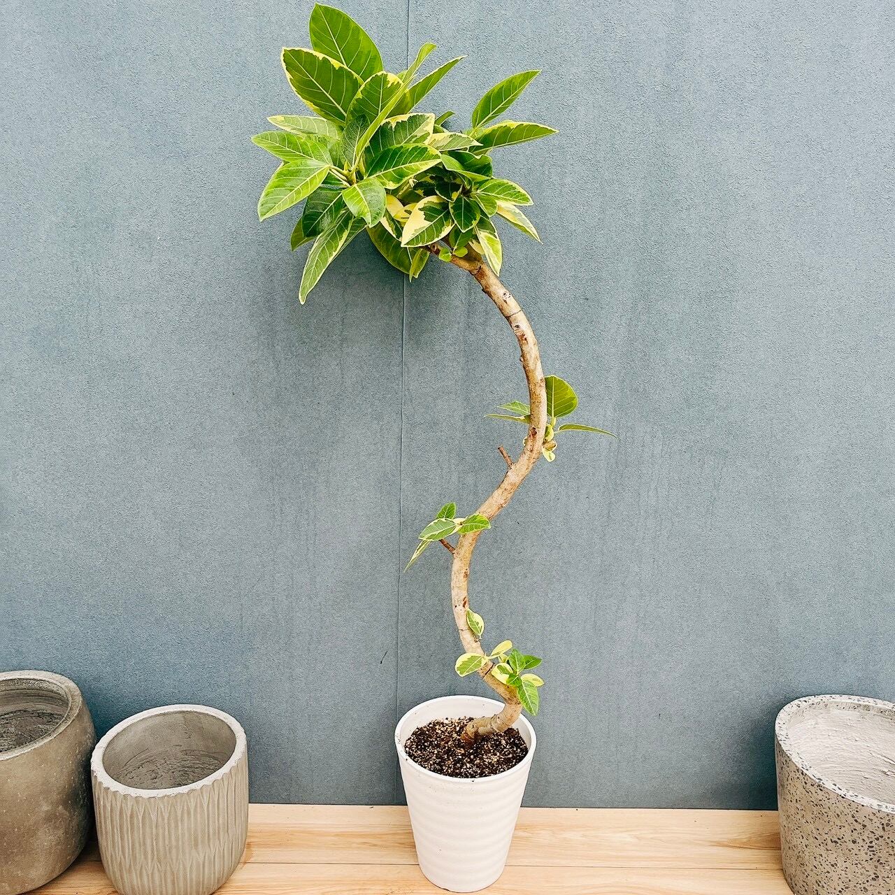 こちらは、おしゃれな曲がりをした一鉢です♪
