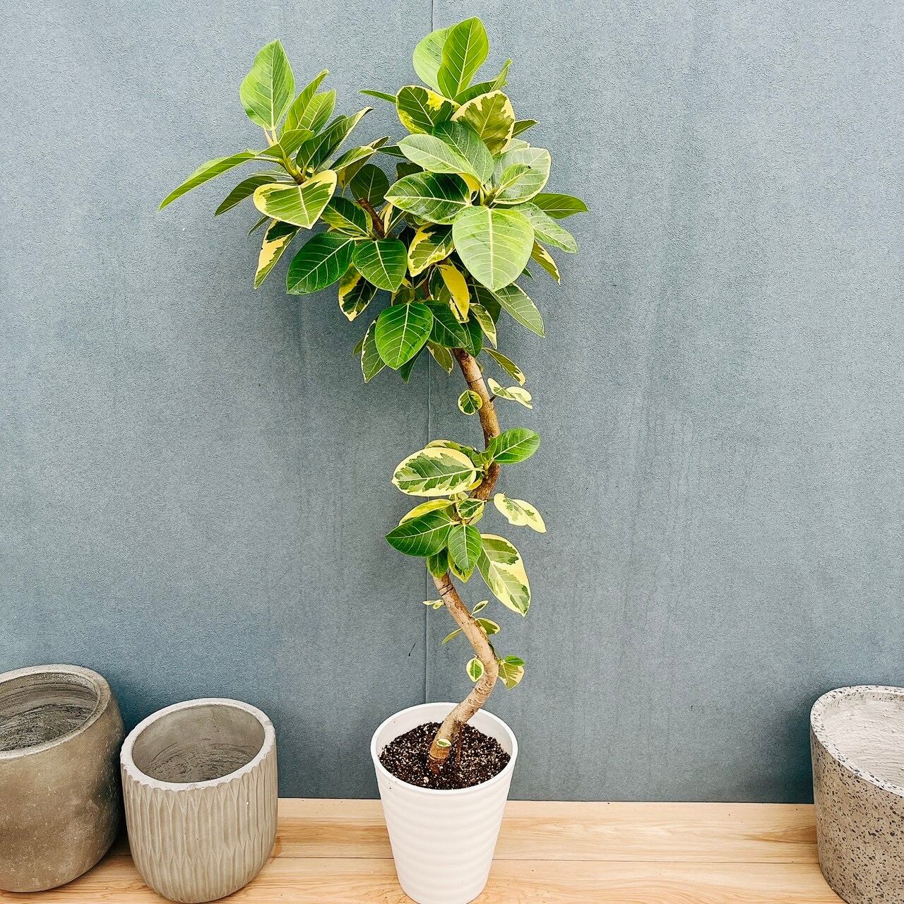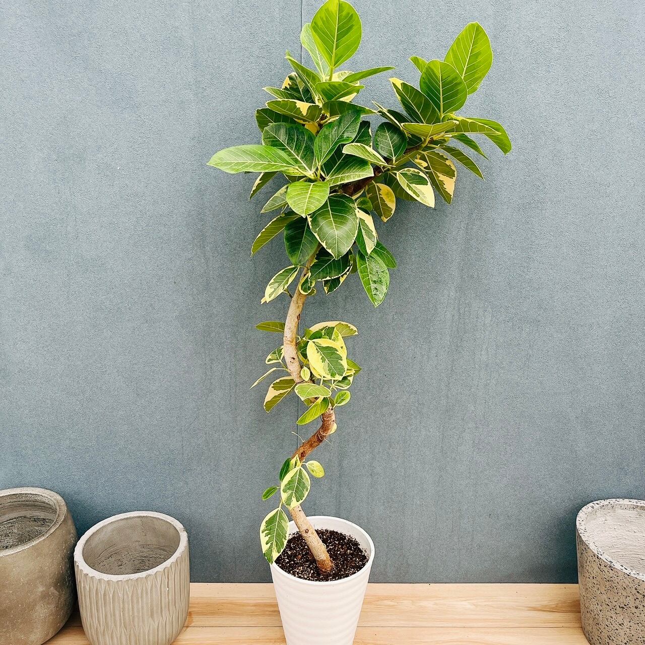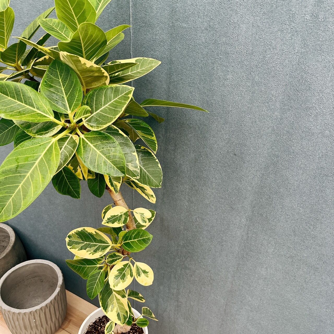 フィカスアルテシマは、ゴムの木の仲間で育てやすく、初めて植物を育てられる方にもおすすめの品種で、『永遠の幸せ』という花言葉を持つことから新築祝いや開店祝い等にもおすすめの植物です。