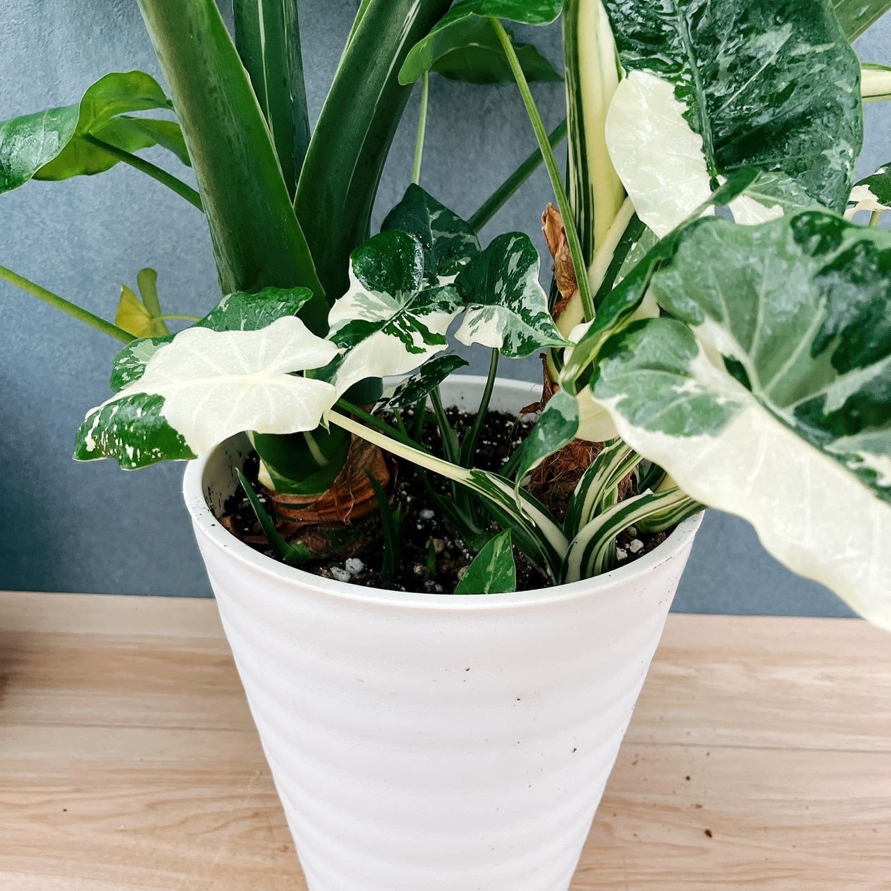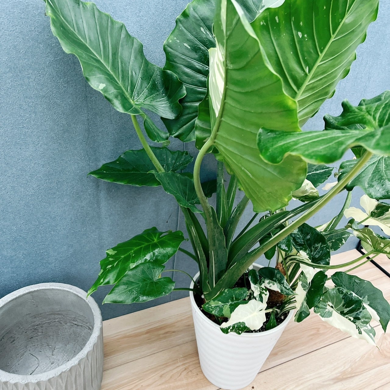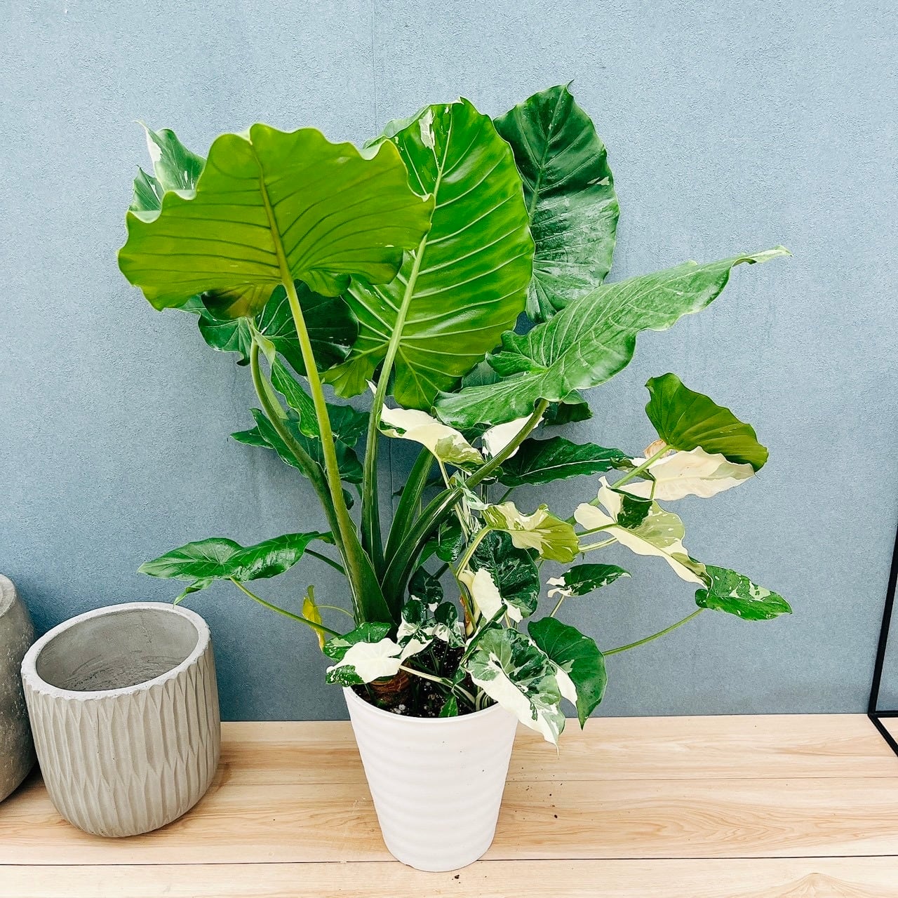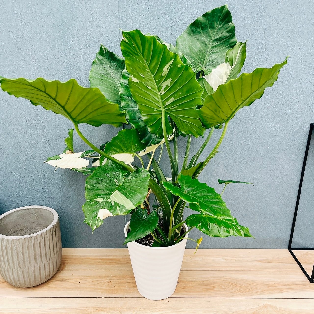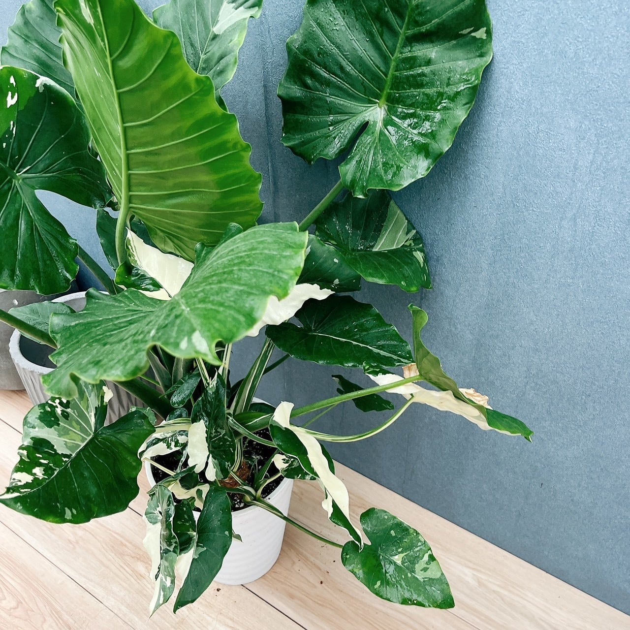 とても大きく、存在感たっぷりの8号サイズクワズイモ斑入りが入荷致しました!!