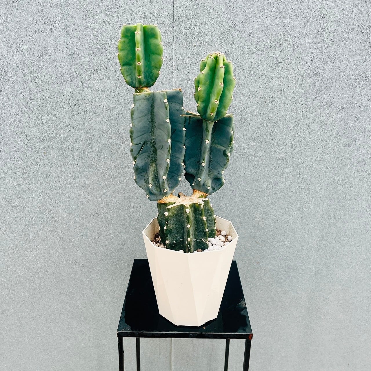 柱サボテン鬼面角は、鋭い棘がなく、丈夫で育てやすいため、サボテンを初めて育てられる方にもおすすめの品種ですよ。こちらは、5号サイズで管理しやすく、可愛らしい樹形をした一鉢です!