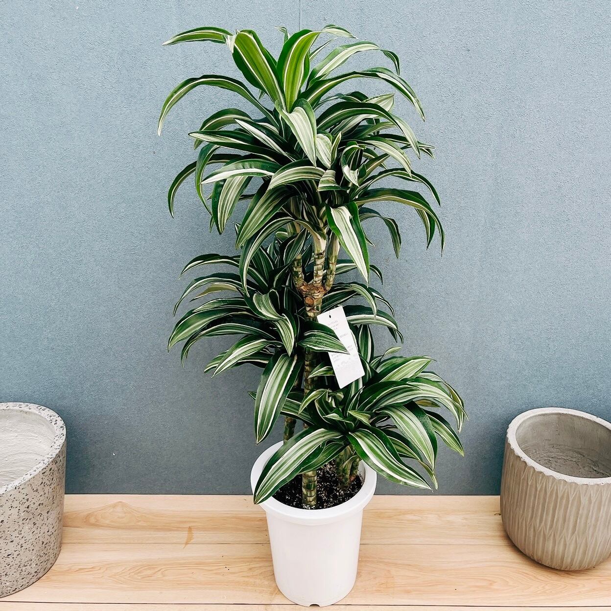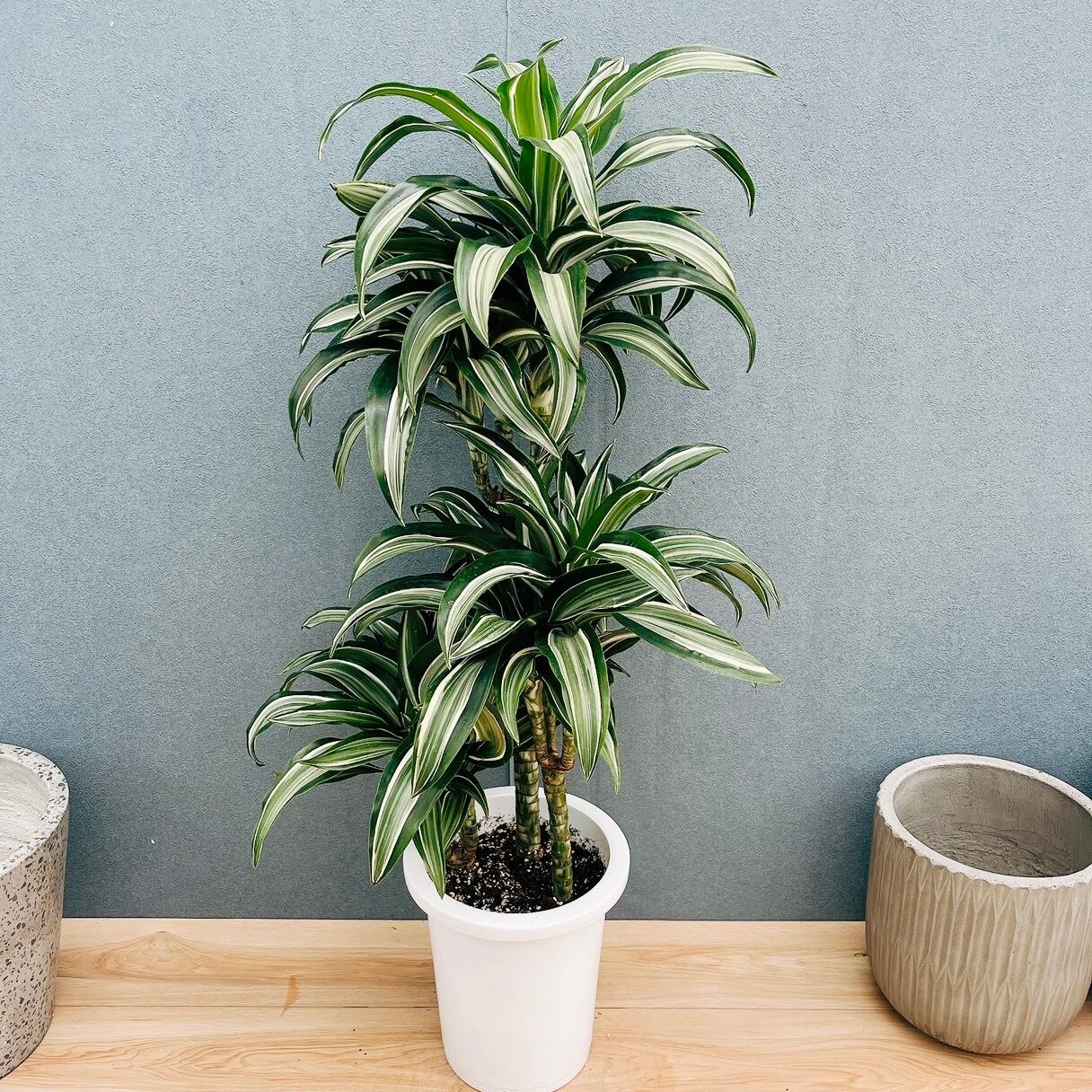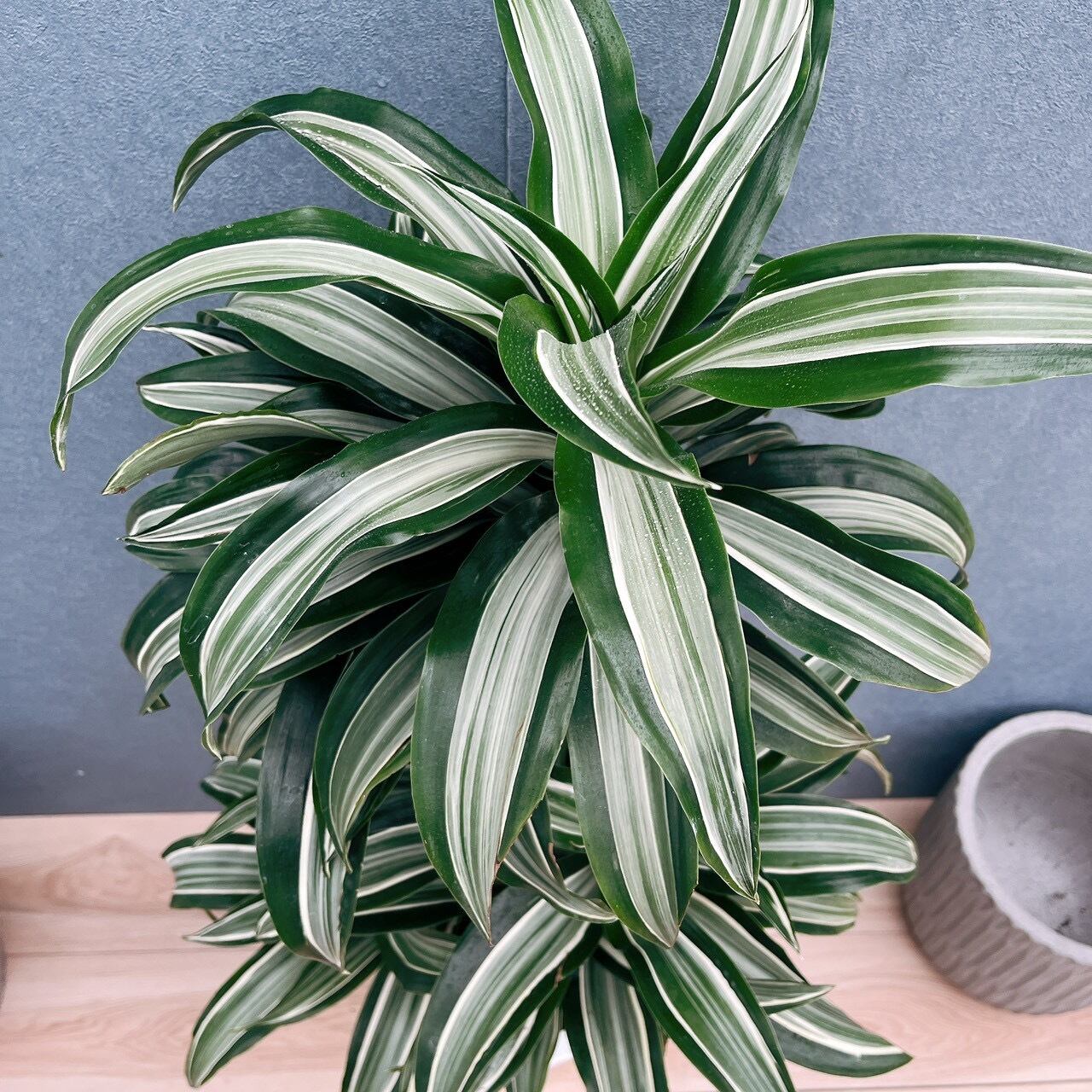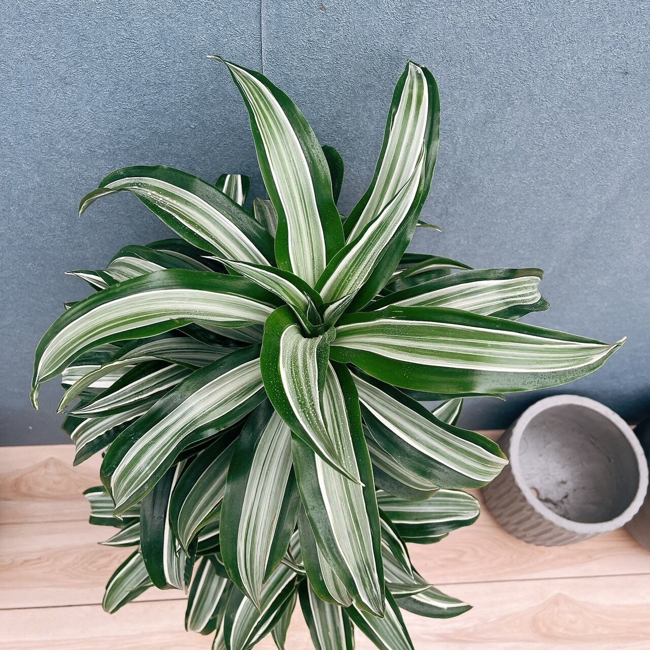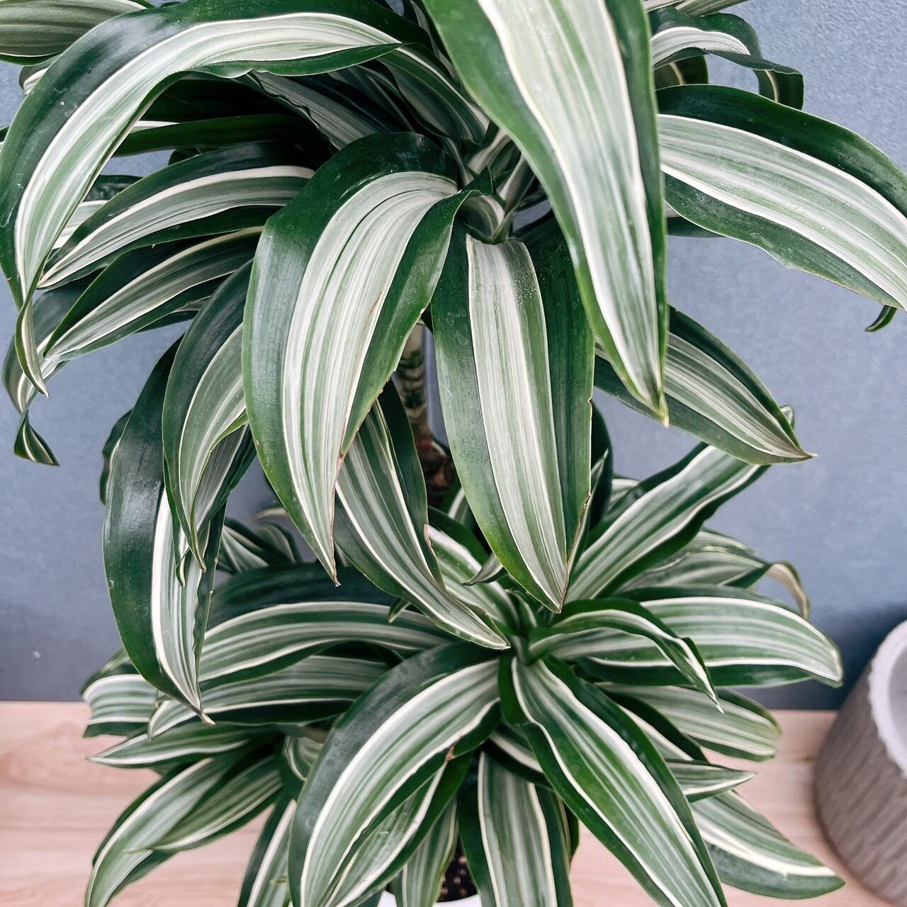 当店人気商品、深緑色に白斑入りのカールの葉がとても美しいドラセナジェードジュエルです!☆
