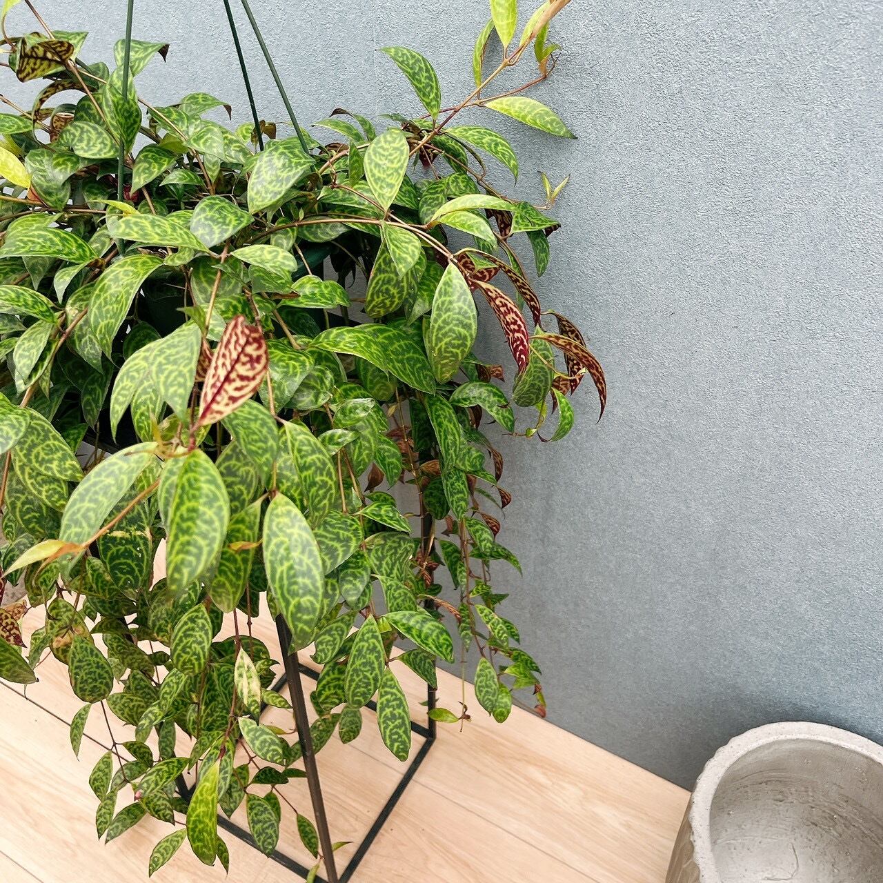 エキゾチックな葉柄模様に、裏は赤紫の葉をもつ、エスキナンサスマルモラタスです☆ 順調に育てば、鮮やかな赤い花を咲かせる品種です。