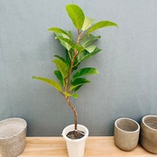 深緑色の艶々とした大きめの葉がおしゃれでかっこいい品種で、『永遠の幸せ』というゴムの木共通の花言葉を持ちます。縁起の良い花言葉から、贈り物としてもおすすめですよ。