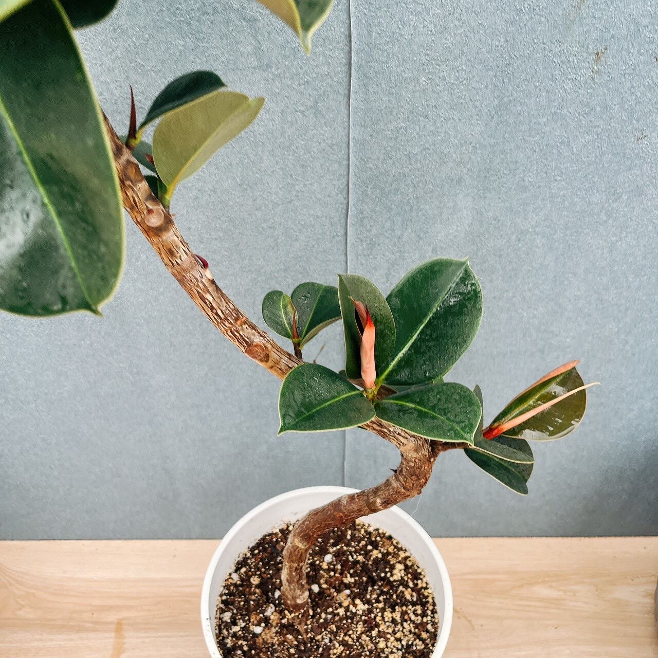 [現品]5番 フィカス エラスティカ ソフィア 曲がり 7号 観葉植物 室内 人気 育てやすい 鉢受け皿付き 珍しい