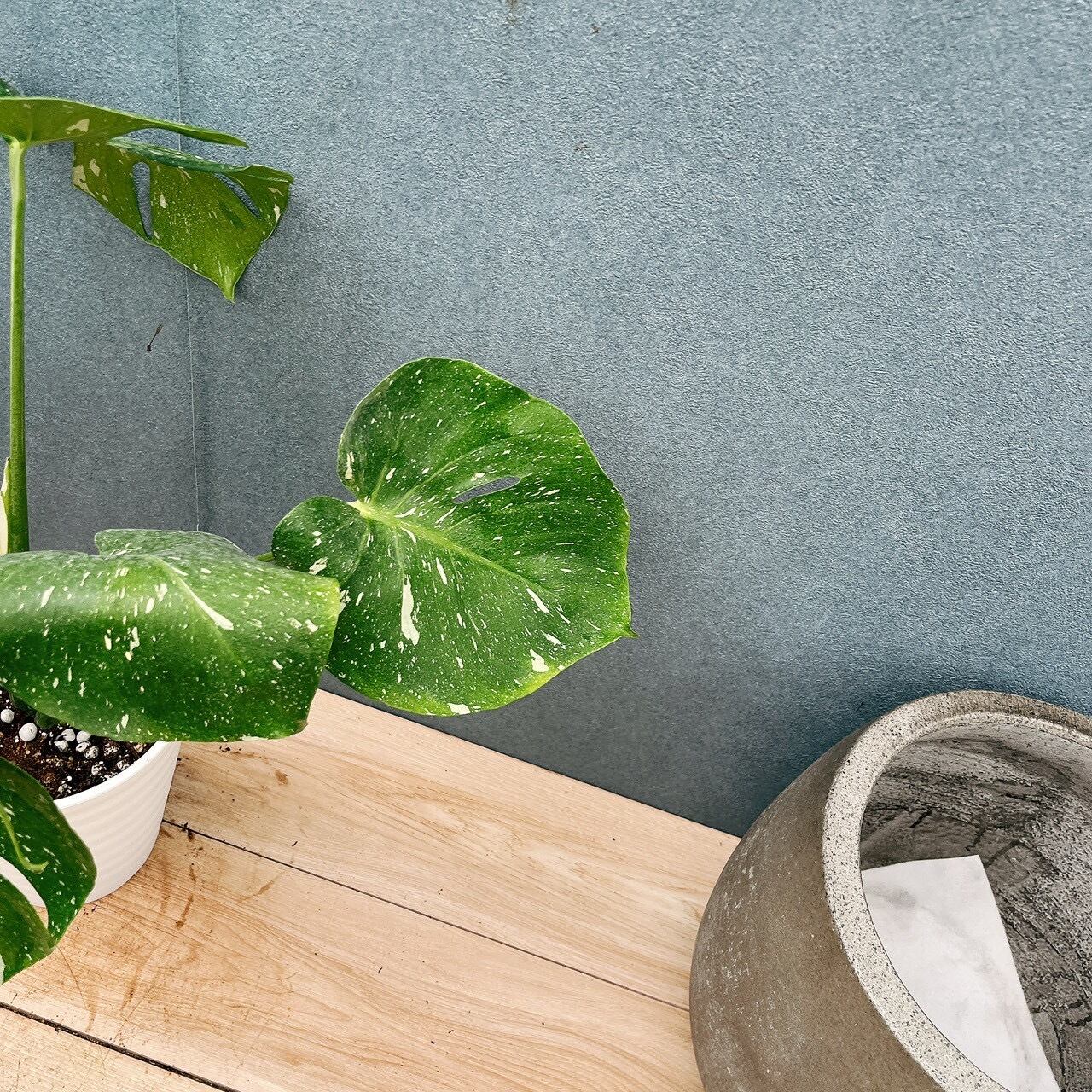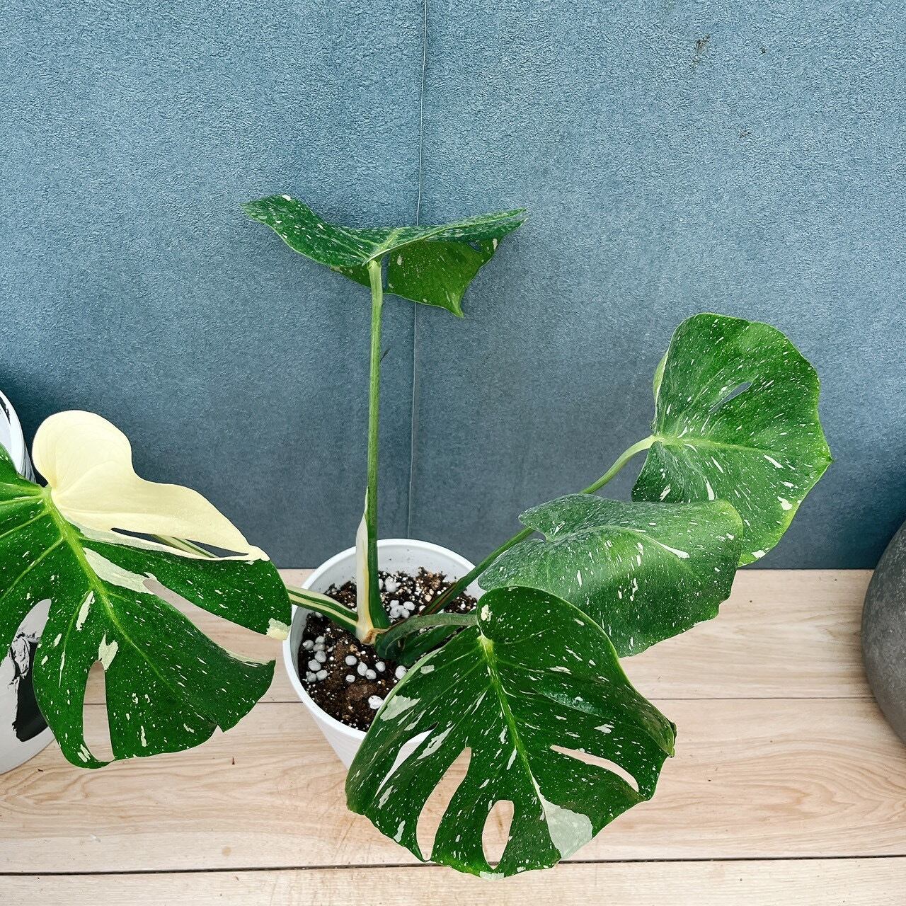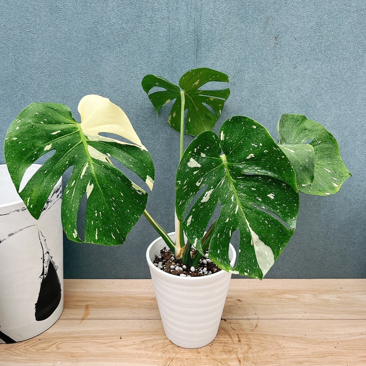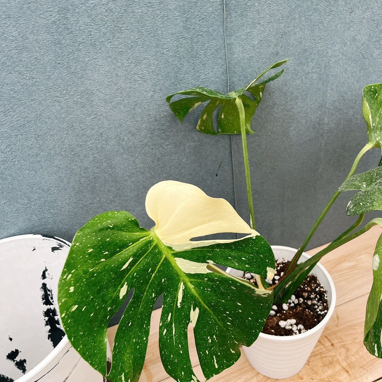斑入りの葉が魅力的な、モンステラデリシオーサ斑入りです☆斑は様々な斑が入り、葉の一枚一枚に個性が出るため、成長がとても楽しみになりますよ。