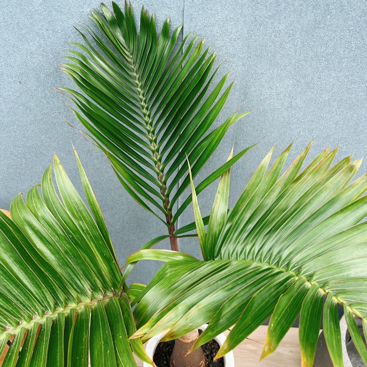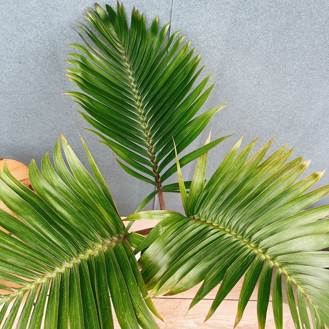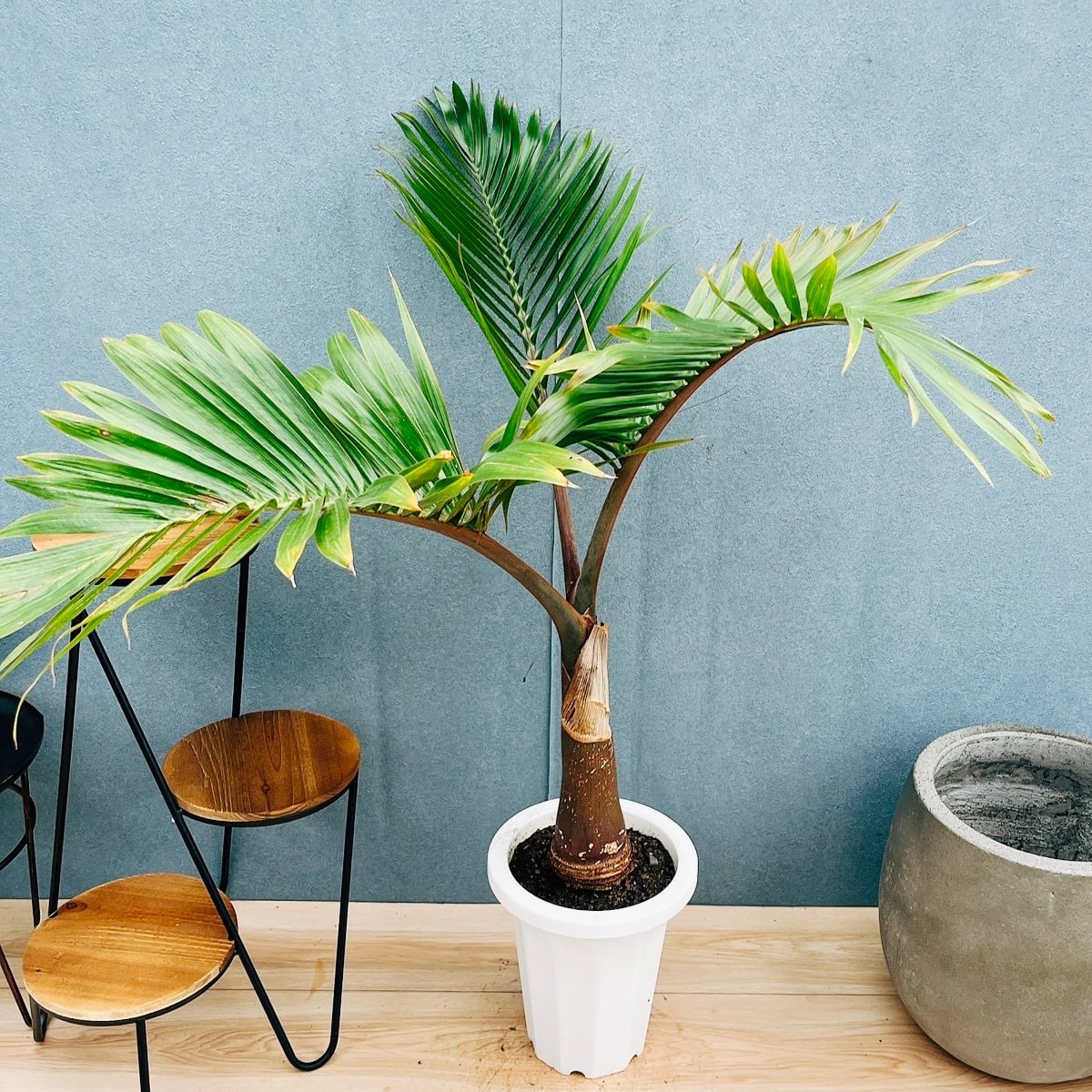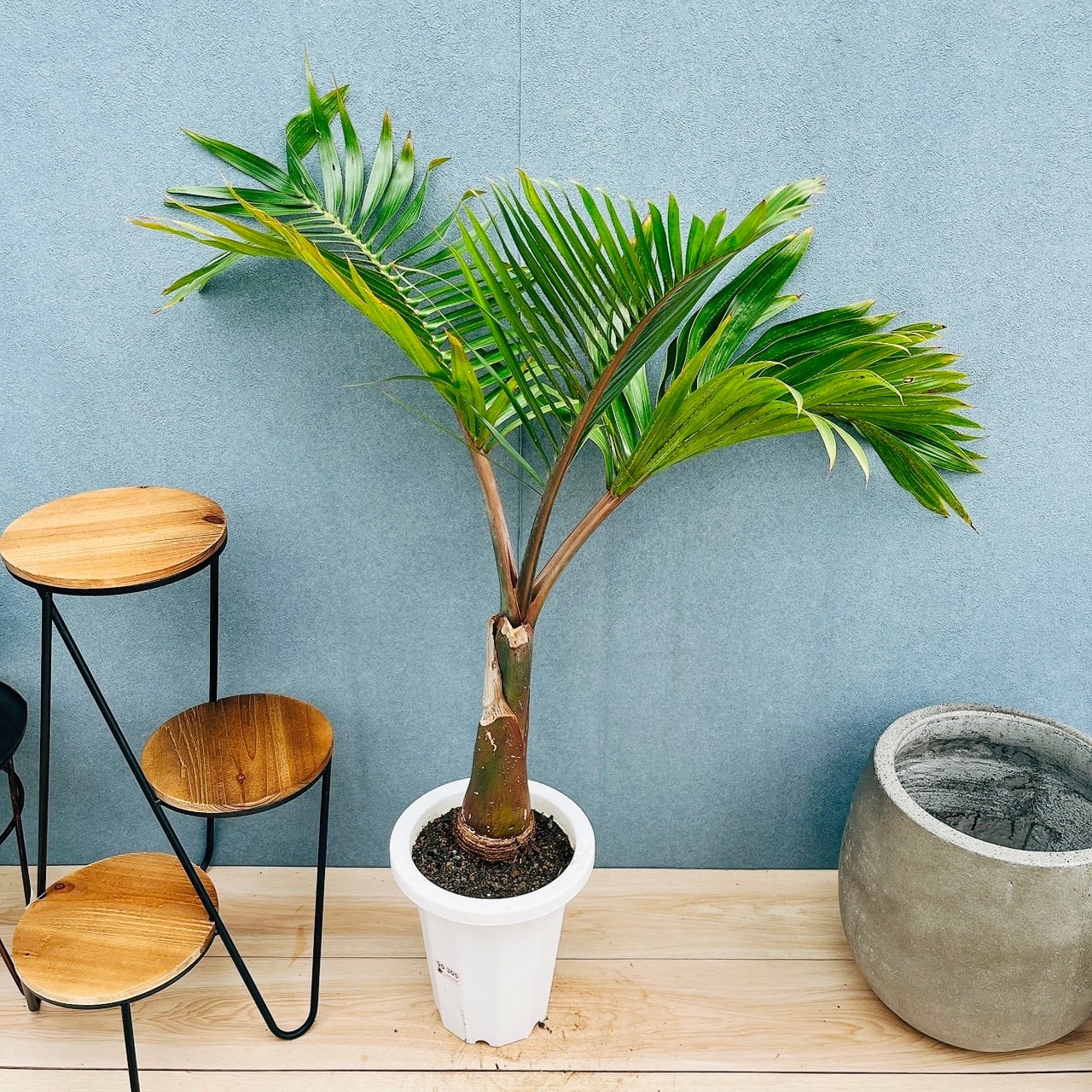 トックリヤシは、置くだけで南国の雰囲気を演出してくれるおしゃれな植物で、花言葉は『平和』と縁起も良いため、贈り物にもにおすすめですよ。