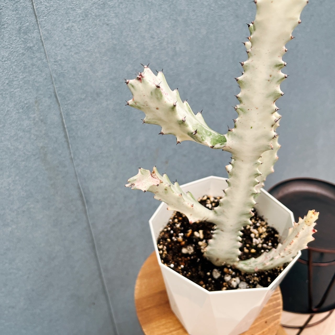 『白い幽霊』の名の如く、とてもユニークな姿に、綺麗な白のボディをもつ希少品種、ユーフォルビアホワイトゴーストです☆