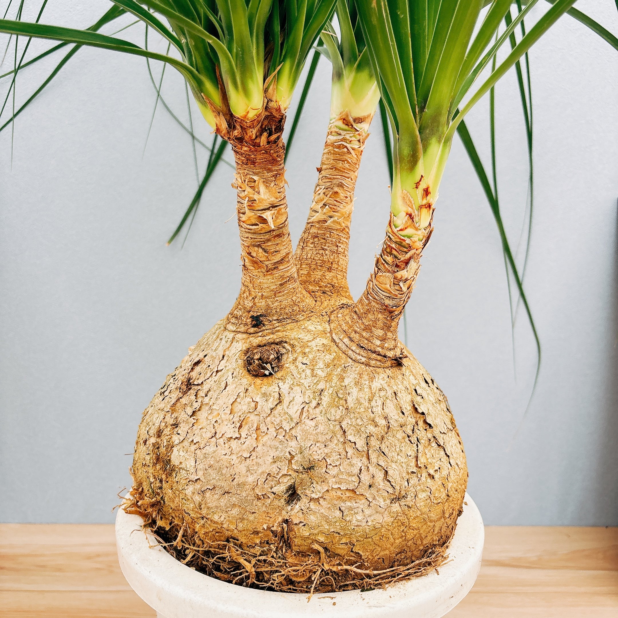 別名ポニーテールと呼ばれ、フサフサした葉が美しく、こちらは幹の存在感がたっぷりの一鉢になります☆