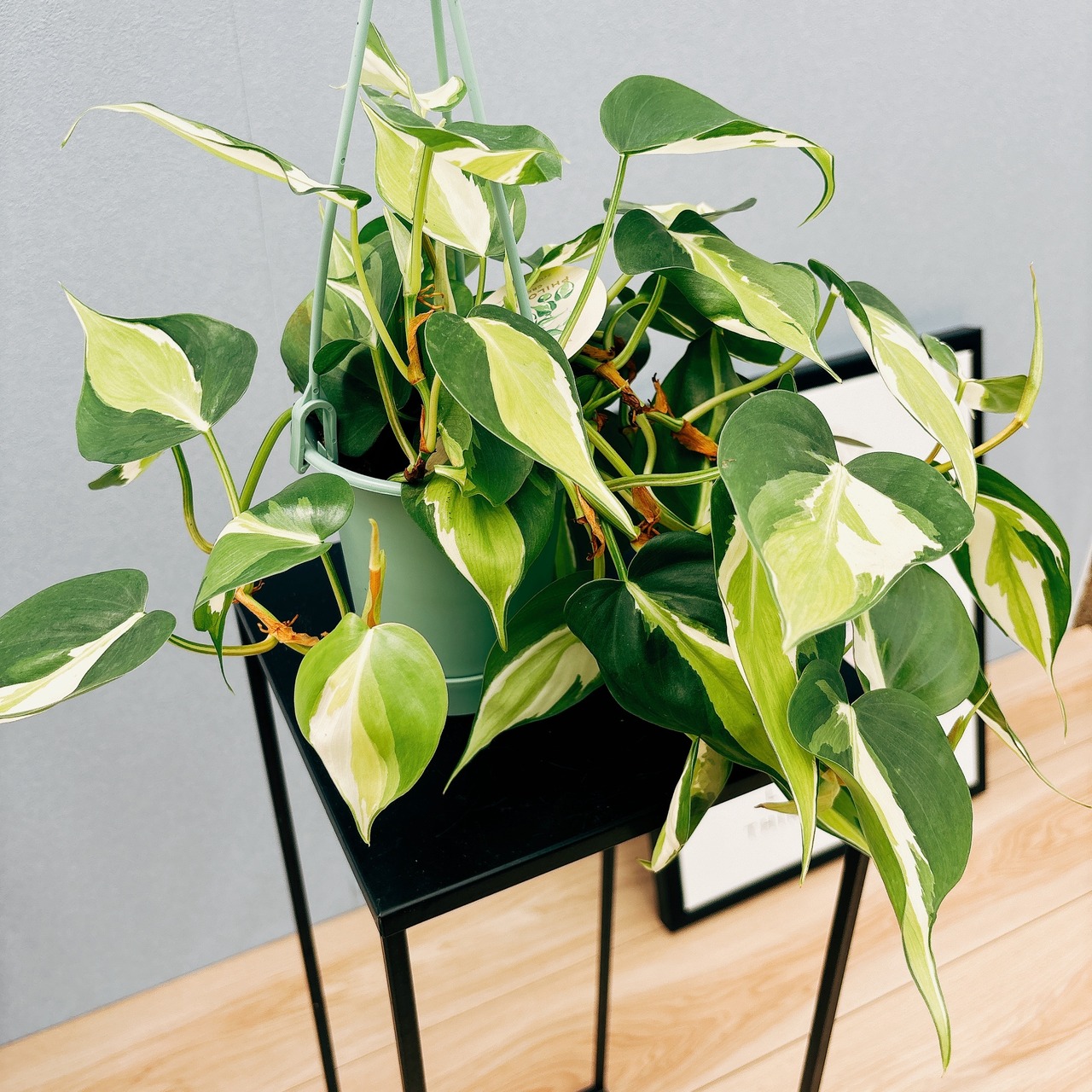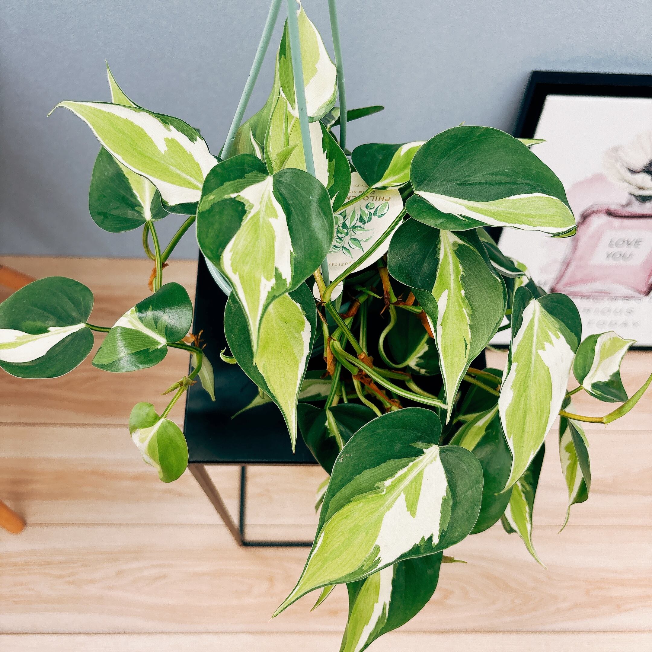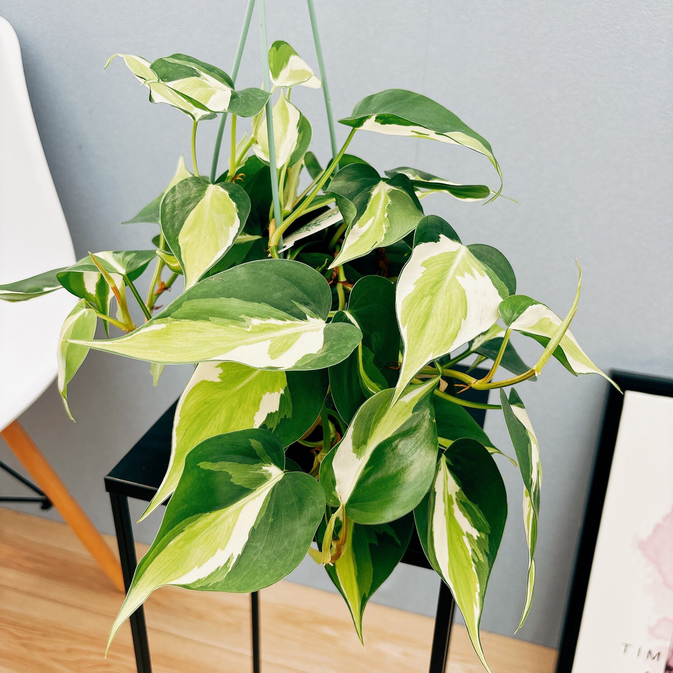 [現品]【珍しい】4番 フィロデンドロン クリームスプラッシュ 3.5号 観葉植物 レア 吊り下げ 吊り鉢 かわいい
