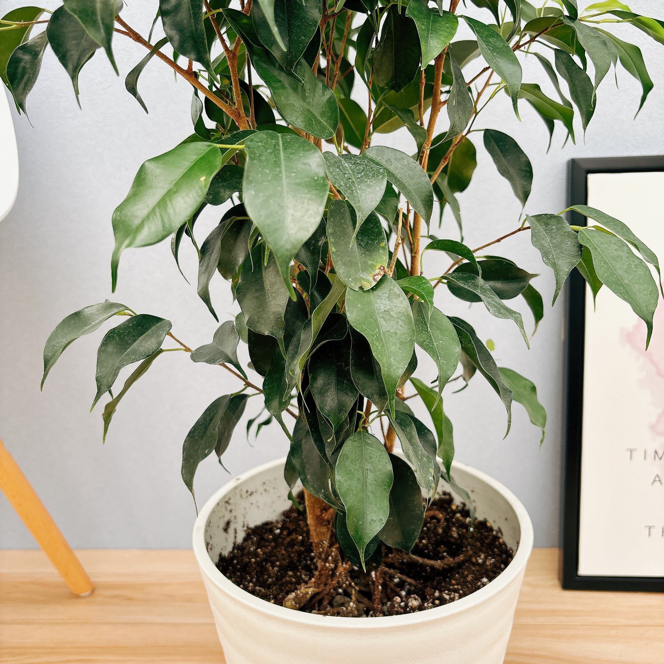 水のあげすぎ、あげなさすぎは、植物が枯れる原因となります。特に水のあげすぎには注意し、乾燥気味に育てて頂くと良いです。ベンジャミンは、日光を好みますが、真夏の直射日光にはお気をつけ下さい。